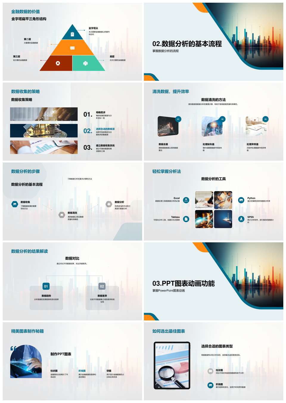 风云办公提供的金融数据清洗分析可视化PPT图表动画,下载格式为pptx,一共33页,作品中文字及图均可以修改和编辑,图片更改请在作品中右键图片并更换,文字修改请直接点击文字进行修改。