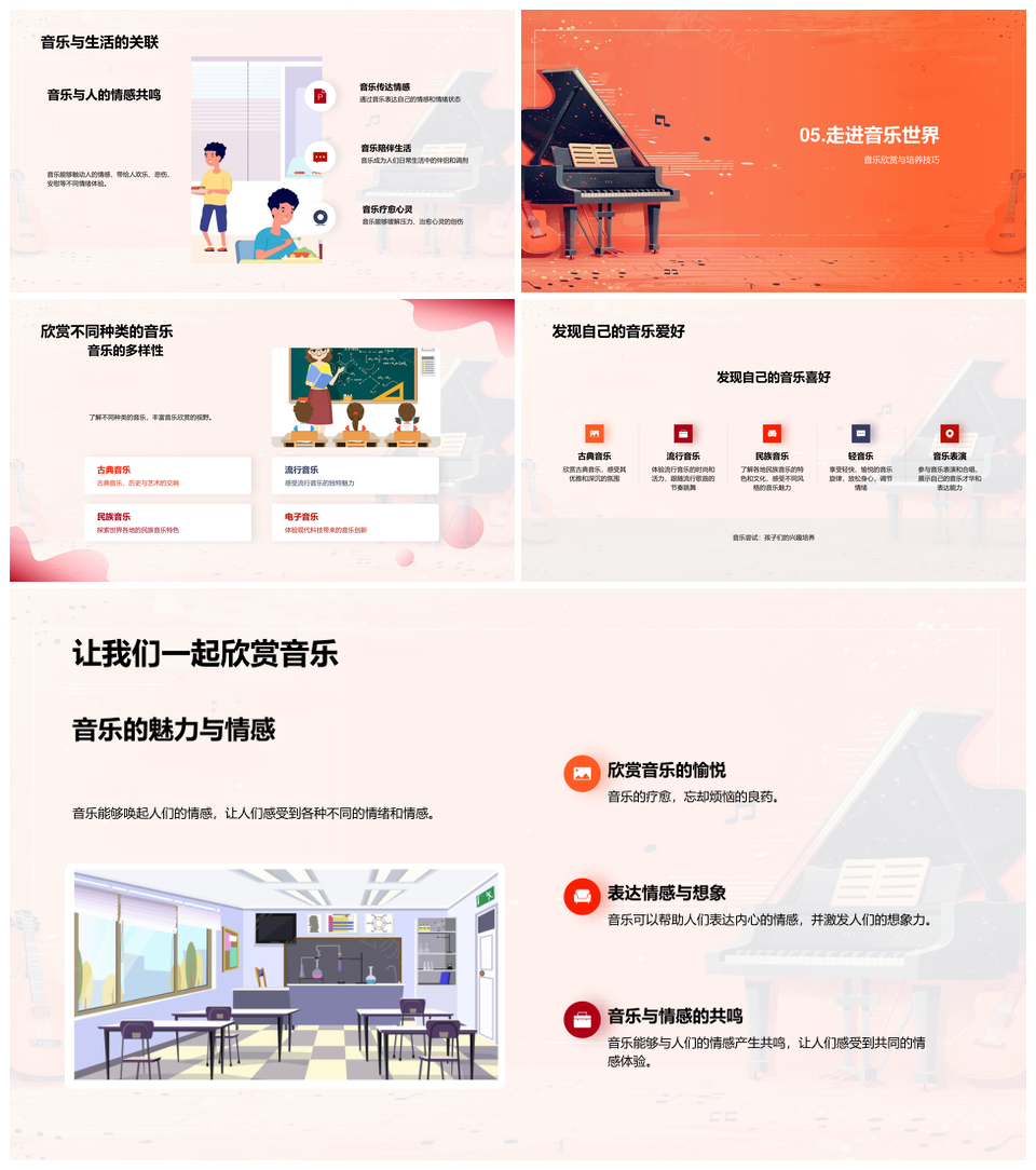 风云办公提供的音乐入门讲座基础概念种类重要性PPT模板,下载格式为pptx,一共23页,作品中文字及图均可以修改和编辑,图片更改请在作品中右键图片并更换,文字修改请直接点击文字进行修改。
