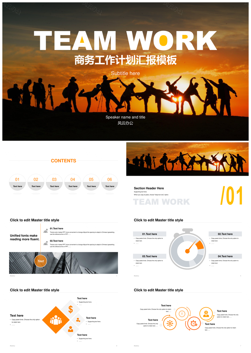 风云办公提供的商务工作计划总结汇报PPT模板,下载格式为pptx,一共31页,作品中文字及图均可以修改和编辑,图片更改请在作品中右键图片并更换,文字修改请直接点击文字进行修改。