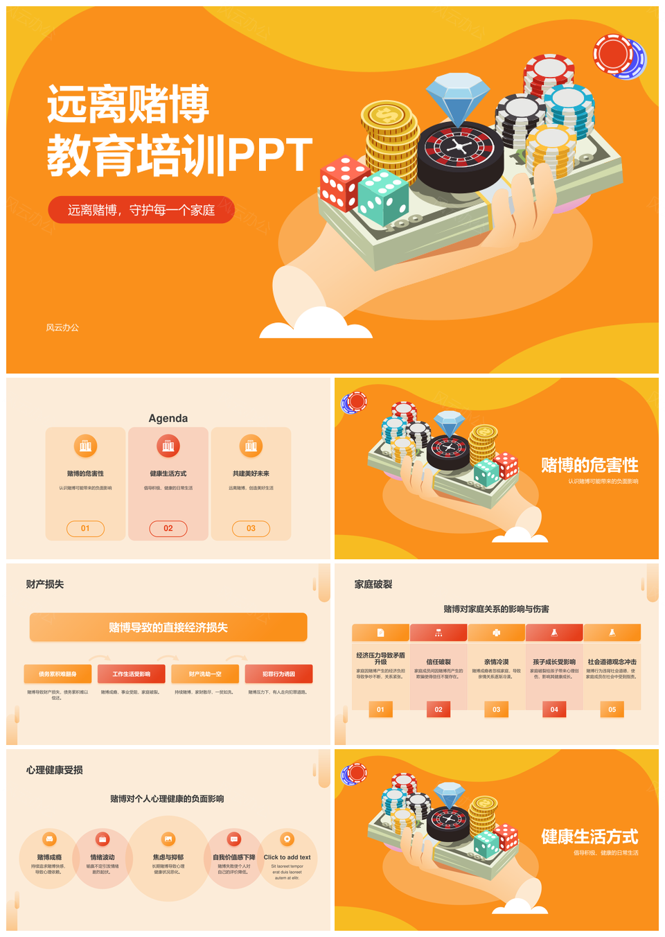 风云办公提供的远离赌博健康生活防止犯罪培训普及PPT模板,下载格式为pptx,一共16页,作品中文字及图均可以修改和编辑,图片更改请在作品中右键图片并更换,文字修改请直接点击文字进行修改。
