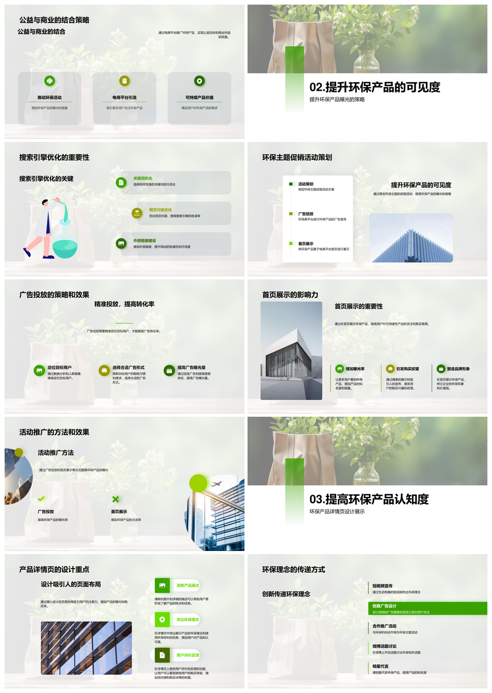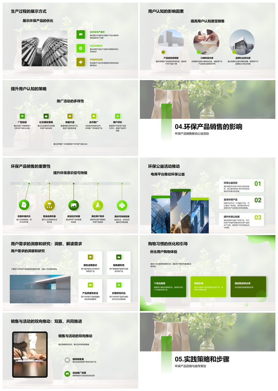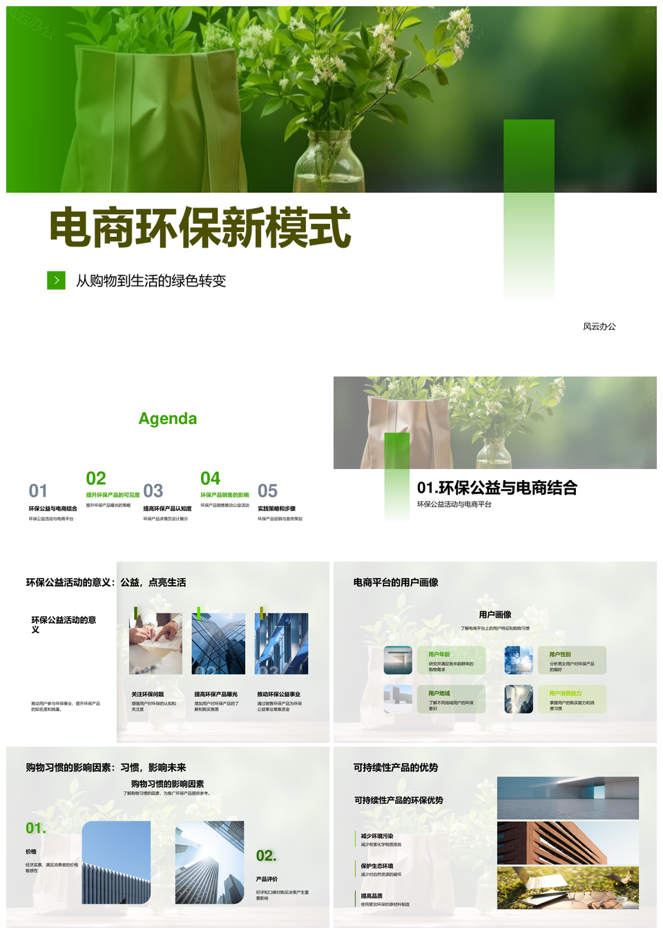 风云办公提供的电商绿色转型引领用户环保可持续购物PPT模板,下载格式为pptx,一共33页,作品中文字及图均可以修改和编辑,图片更改请在作品中右键图片并更换,文字修改请直接点击文字进行修改。