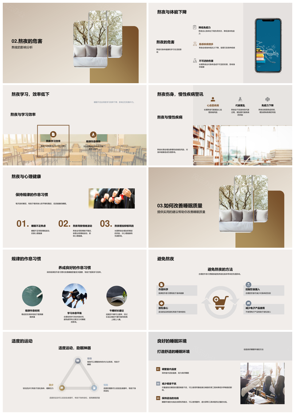 这是一张良好睡眠提升学效规律作息远离熬夜危害PPT模板,包含良好睡眠、提升学效、规律作息、远离熬夜、危害等主题内容,也可用作良好睡眠提升学效、规律作息远离熬夜、良好睡眠规律作息、良好睡眠远离熬夜、提升学效规律作息、远离熬夜危害、睡眠提升学效、良好睡眠作息、睡眠提升学效规律、良好睡眠提升作息、良好睡眠、提升学效、规律作息、远离熬夜、熬夜危害等PPT场景使用。 风云办公提供的良好睡眠提升学效规律作息远离熬夜危害PPT模板,下载格式为pptx,一共29页,作品中文字及图均可以修改和编辑,图片更改请在作品中右键图片并更换,文字修改请直接点击文字进行修改。
