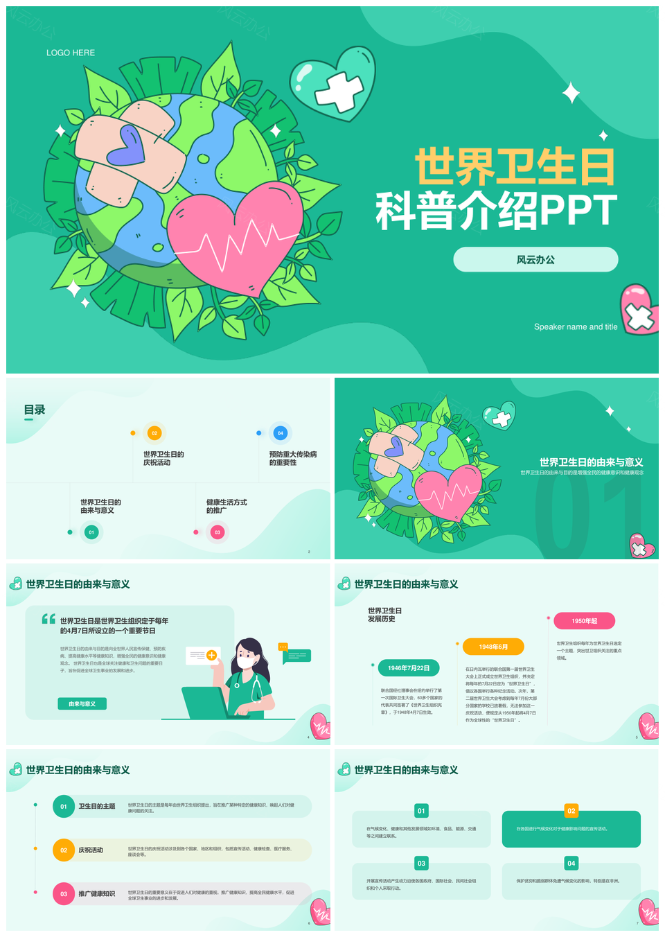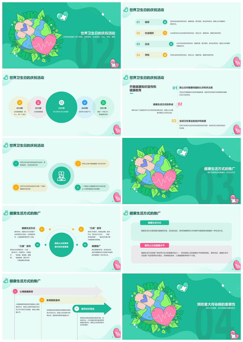 2025卡通手绘扁平绿色世界地球日科普教育PPT模板