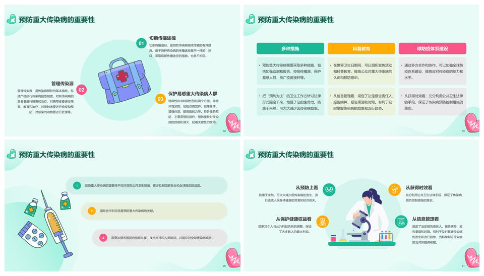 这款模板以浅绿与墨绿为主色调,搭配柔和插画风,兼顾商务专业性与视觉治愈感。页面采用模块化布局,图表版式灵活适配不同内容结构,支持一键替换配色及元素。素材库包含20+可编辑图表、50+矢量icon及多场景插画,覆盖数据分析、项目汇报等需求。所有元素均为可拆分图层,文字样式预设完善,修改便捷。画质支持高清与超高清输出,适用于线上线下多种展示场景。严谨的版式设计确保逻辑清晰,同时保留视觉呼吸感,帮助用户高效完成专业而不失温度的演示。