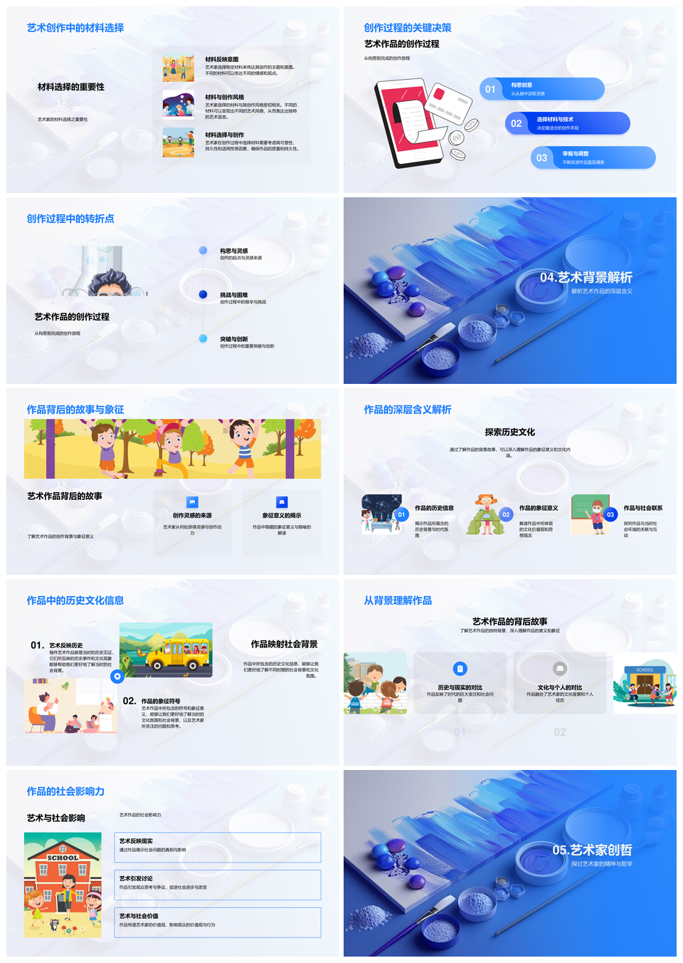 艺术创作流派风格社会历史文化技术灵感解析PPT模板推荐