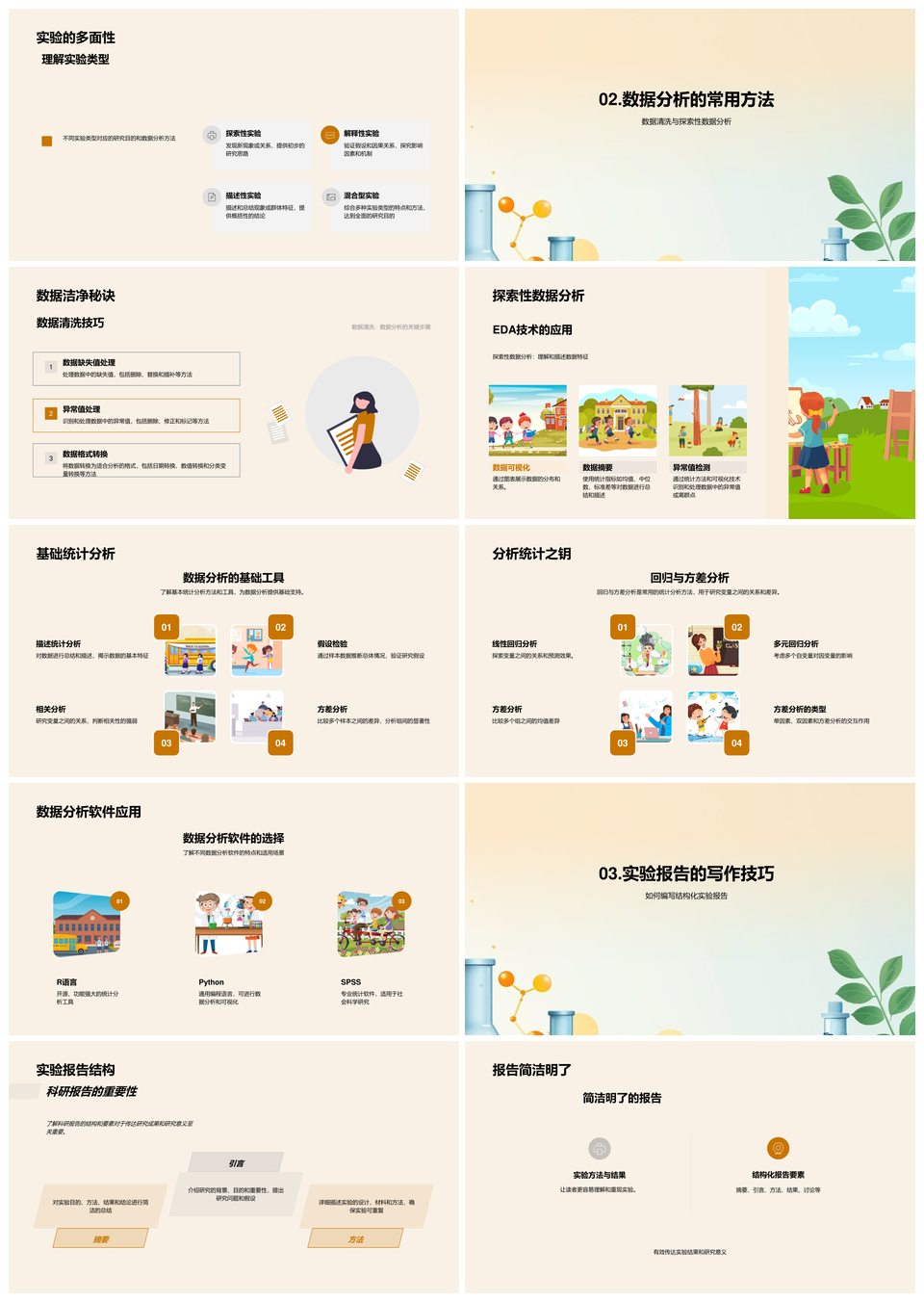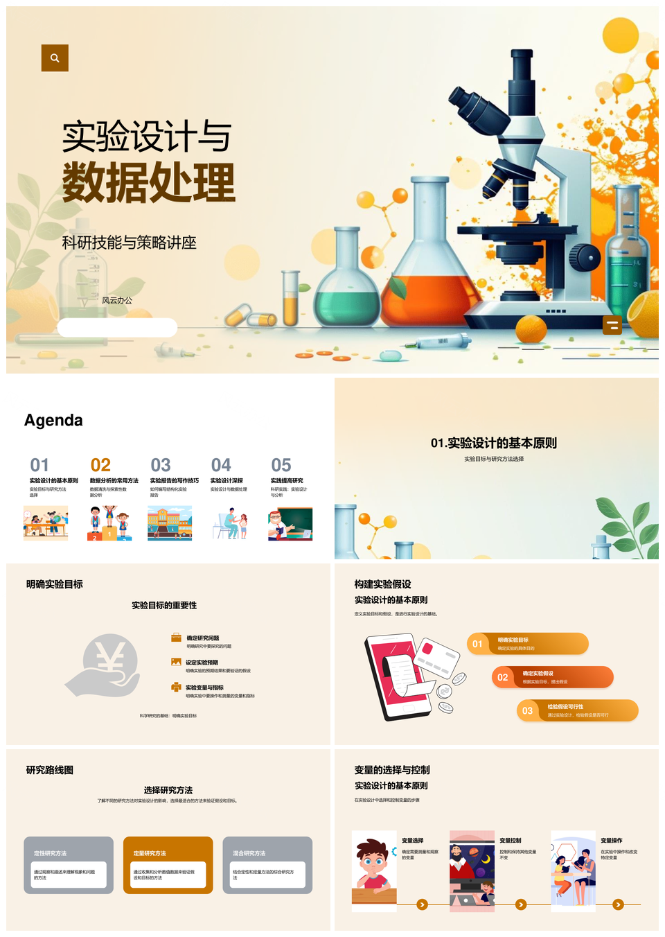 风云办公提供的科研实验设计数据处理分析方法技能PPT模板,下载格式为pptx,一共33页,作品中文字及图均可以修改和编辑,图片更改请在作品中右键图片并更换,文字修改请直接点击文字进行修改。
