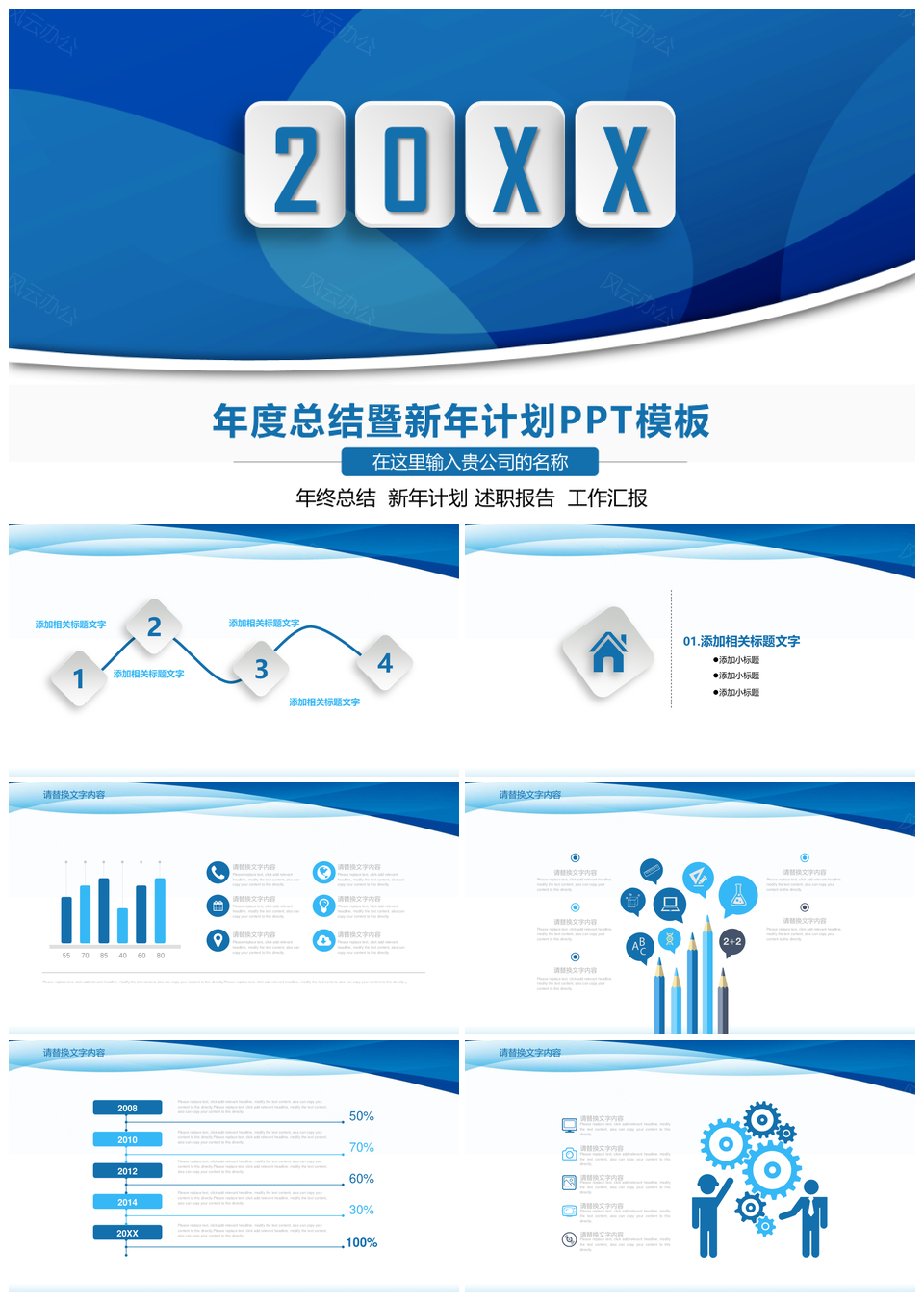 风云办公提供的蓝色简约新年工作计划总结PPT模板,下载格式为pptx,一共26页,作品中文字及图均可以修改和编辑,图片更改请在作品中右键图片并更换,文字修改请直接点击文字进行修改。