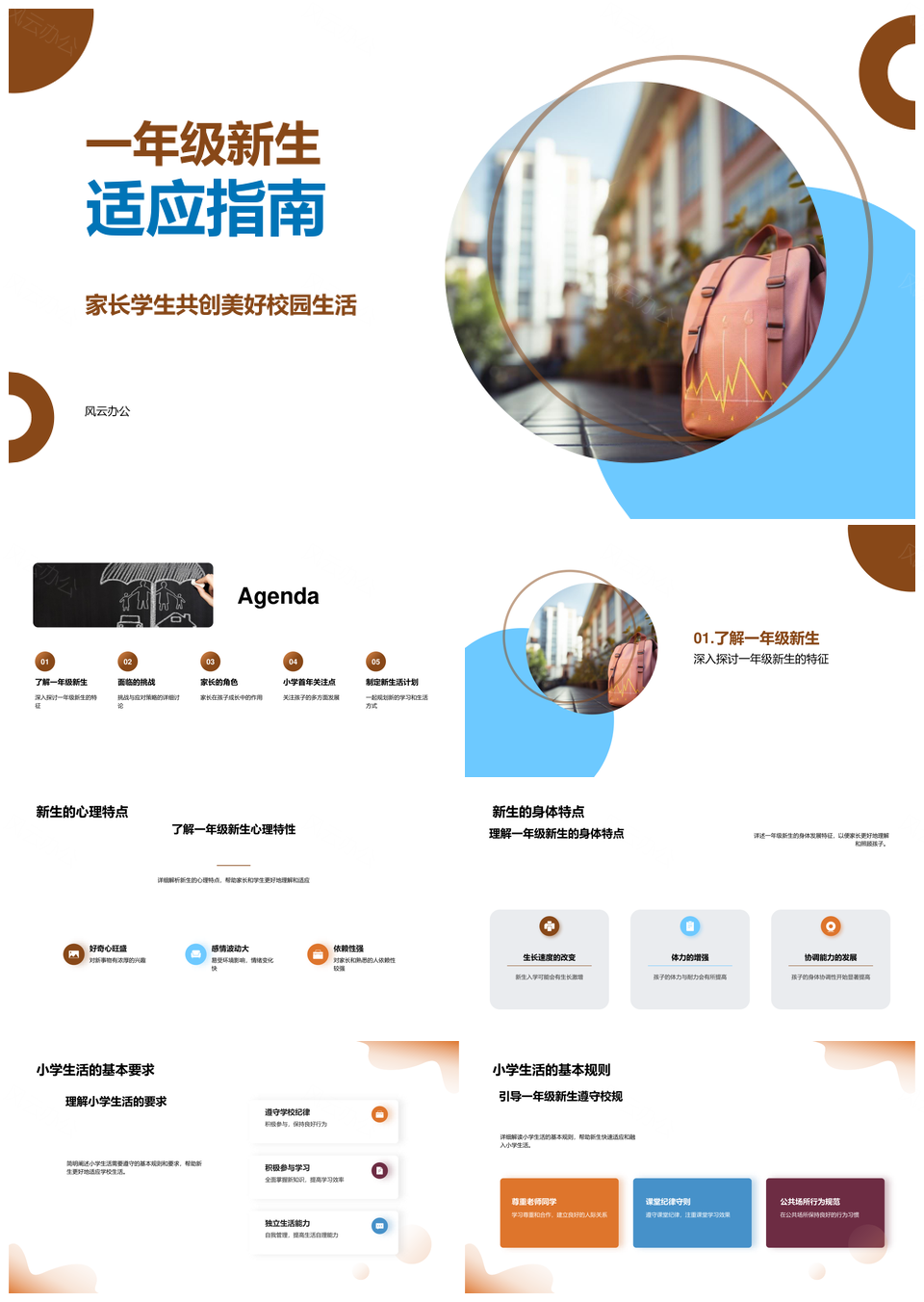 风云办公提供的一年级班主任助新生适应校园社交PPT模板,下载格式为pptx,一共24页,作品中文字及图均可以修改和编辑,图片更改请在作品中右键图片并更换,文字修改请直接点击文字进行修改。