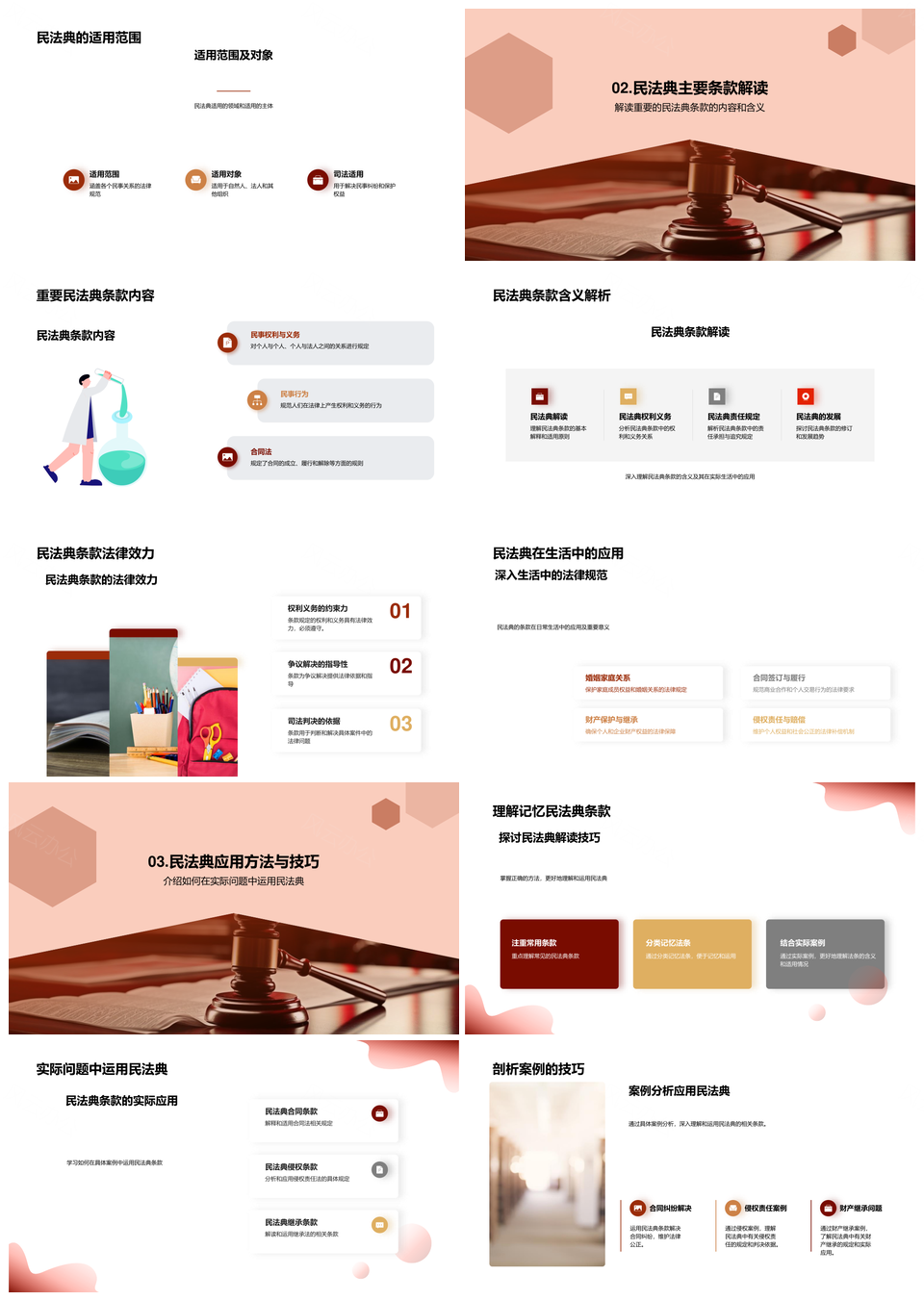 风云办公提供的民法典法学课程条款应用与历史解析PPT模板,下载格式为pptx,一共26页,作品中文字及图均可以修改和编辑,图片更改请在作品中右键图片并更换,文字修改请直接点击文字进行修改。
