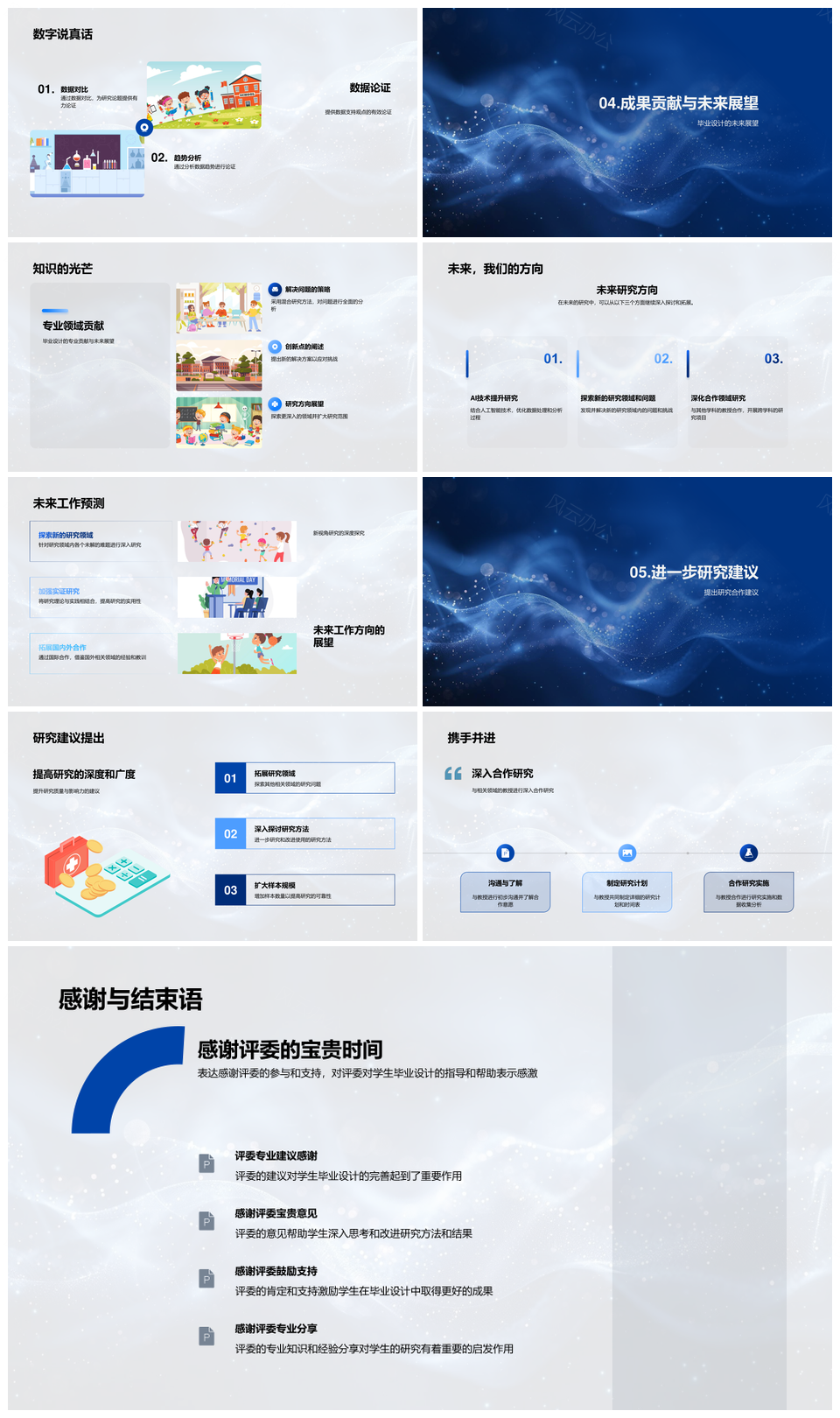 毕业设计蓝色简洁学院风框架完整毕业论文答辩PPT模板
