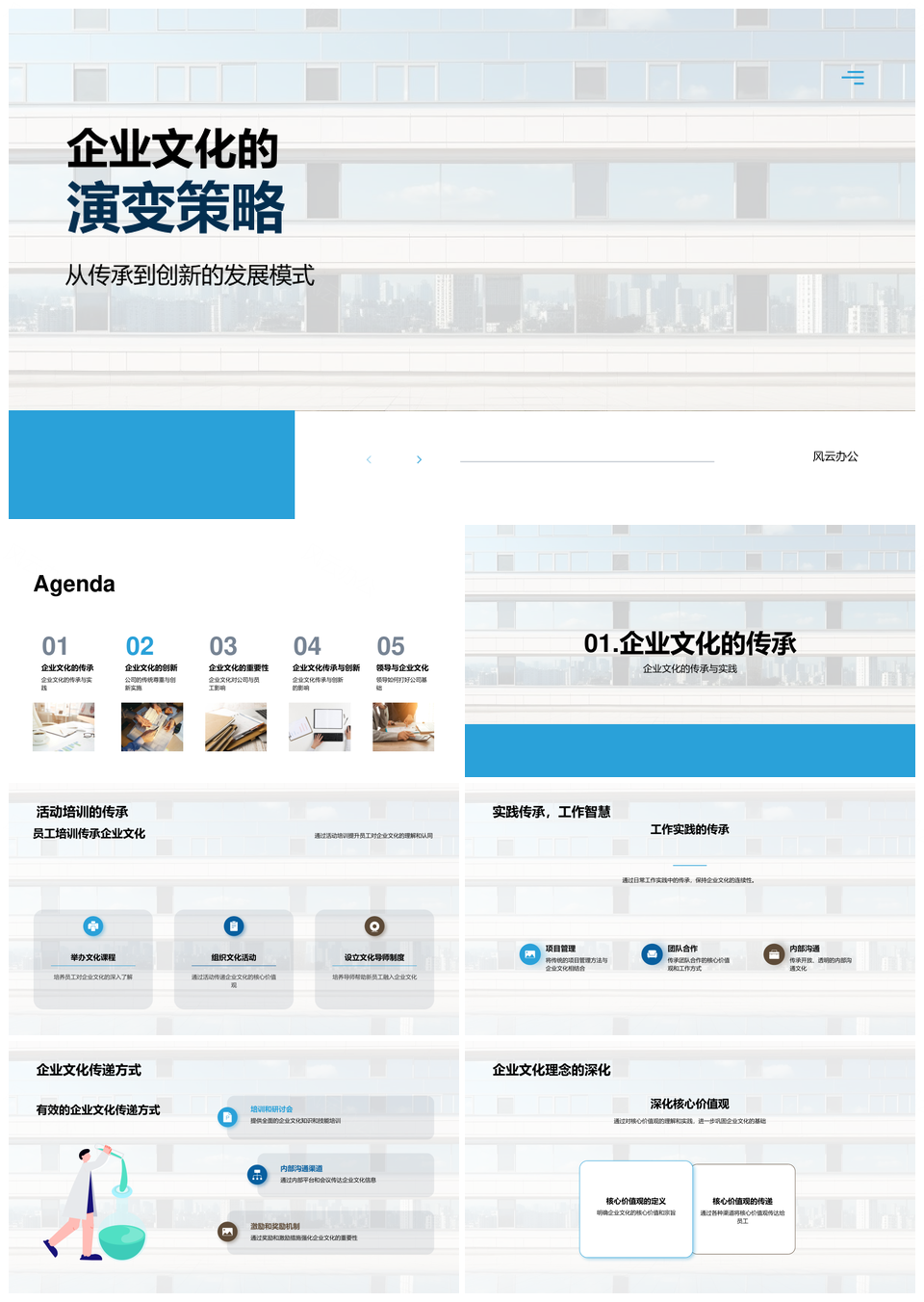 风云办公提供的企业文化传承创新策略领导员工发展PPT模板,下载格式为pptx,一共28页,作品中文字及图均可以修改和编辑,图片更改请在作品中右键图片并更换,文字修改请直接点击文字进行修改。