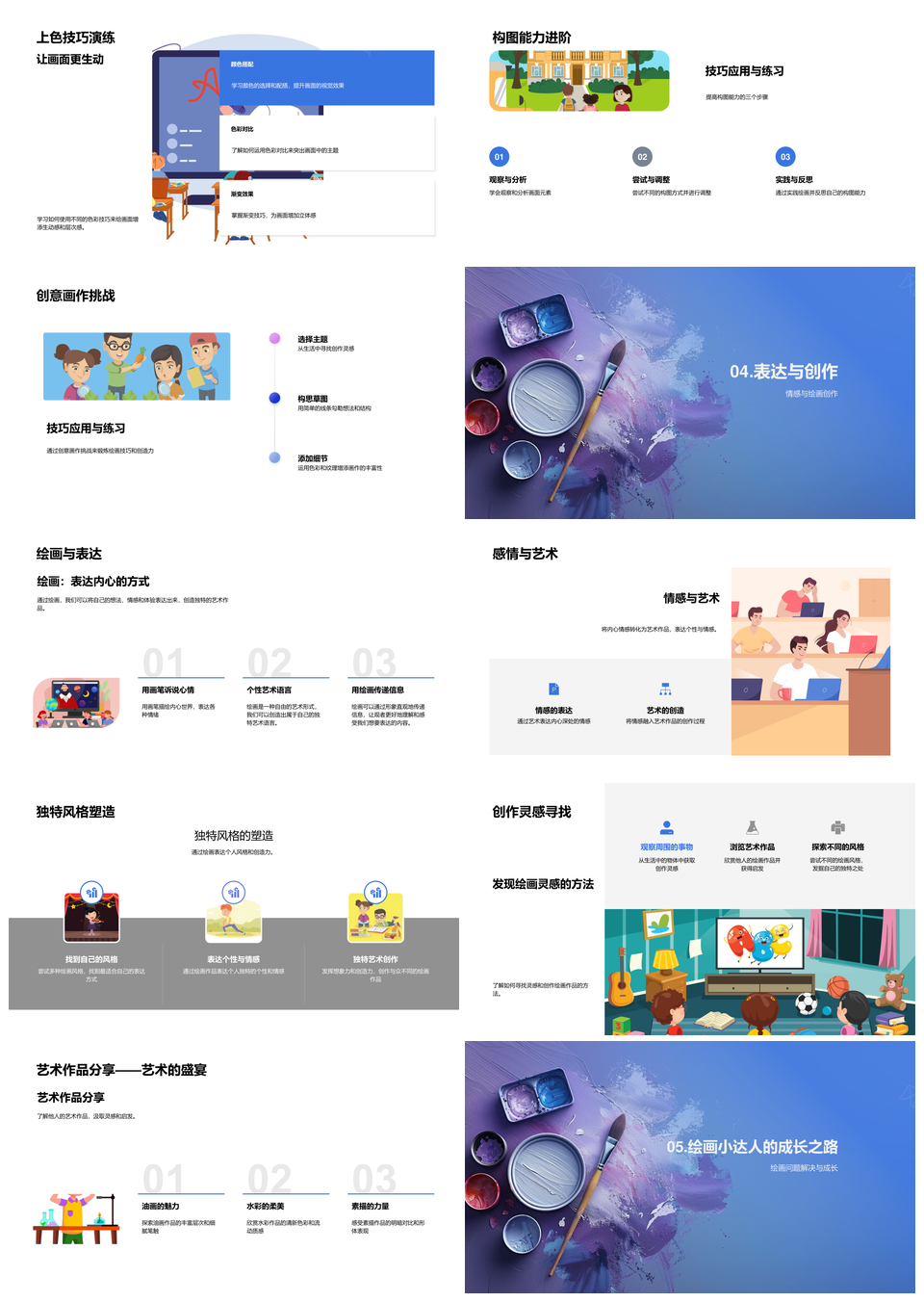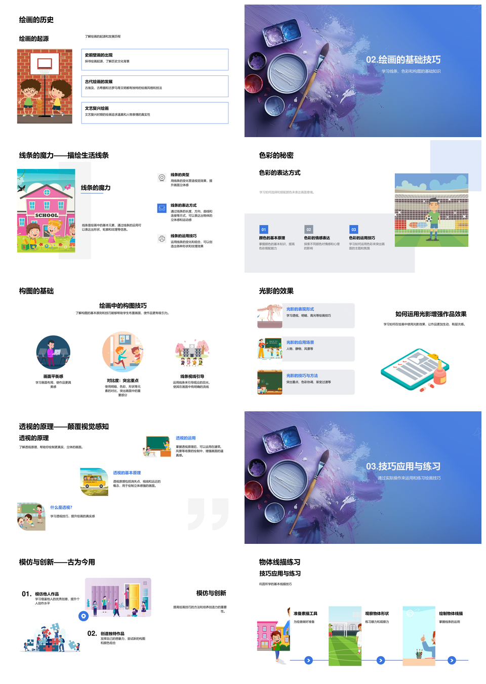 风云办公提供的四年级美术课线描色彩构图绘画教学PPT模板,下载格式为pptx,一共33页,作品中文字及图均可以修改和编辑,图片更改请在作品中右键图片并更换,文字修改请直接点击文字进行修改。