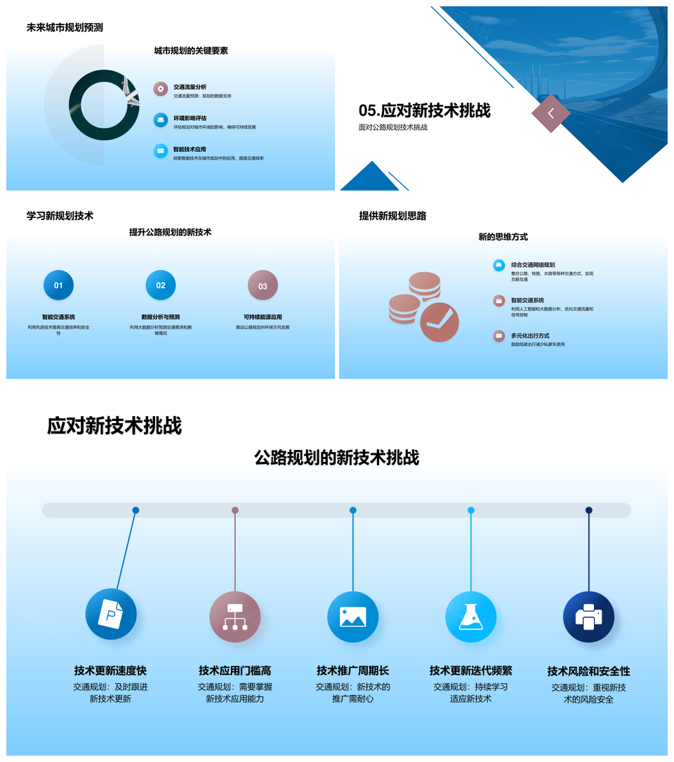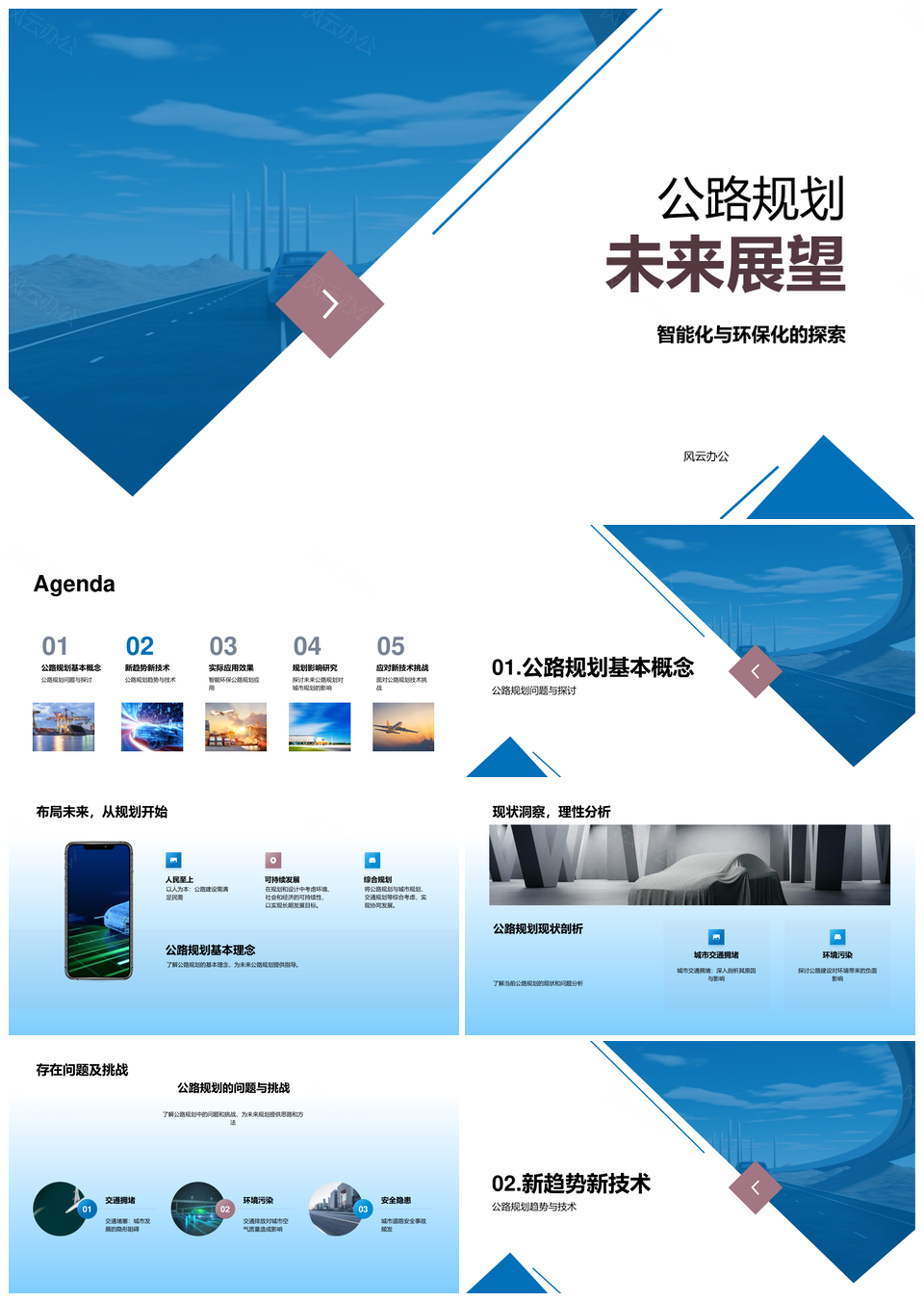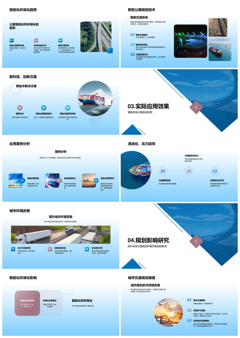 这是一张智能环保公路新技术缓解交通塑造未来城市景观PPT模板,包含智能、环保、公路、新技术、缓解、交通、塑造、未来、城市、景观等主题内容,也可用作智能环保公路新技术、智能环保公路、环保公路新技术、公路新技术缓解交通、新技术缓解交通、缓解交通塑造未来、交通塑造未来、塑造未来城市、未来城市景观、环保公路新技术缓解、缓解交通塑造、新技术缓解、缓解交通、智能环保、环保公路、公路新技术等PPT场景使用。 风云办公提供的智能环保公路新技术缓解交通塑造未来城市景观PPT模板,下载格式为pptx,一共23页,作品中文字及图均可以修改和编辑,图片更改请在作品中右键图片并更换,文字修改请直接点击文字进行修改。
