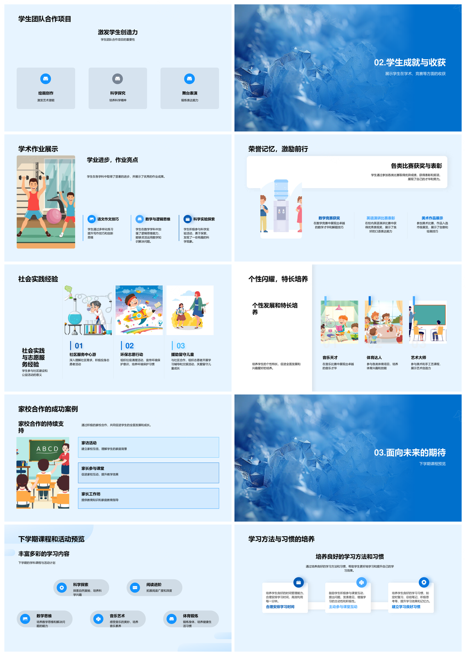 2025学期成果总结与新学期计划学习成就社区服务个人发展班级荣誉PPT模板