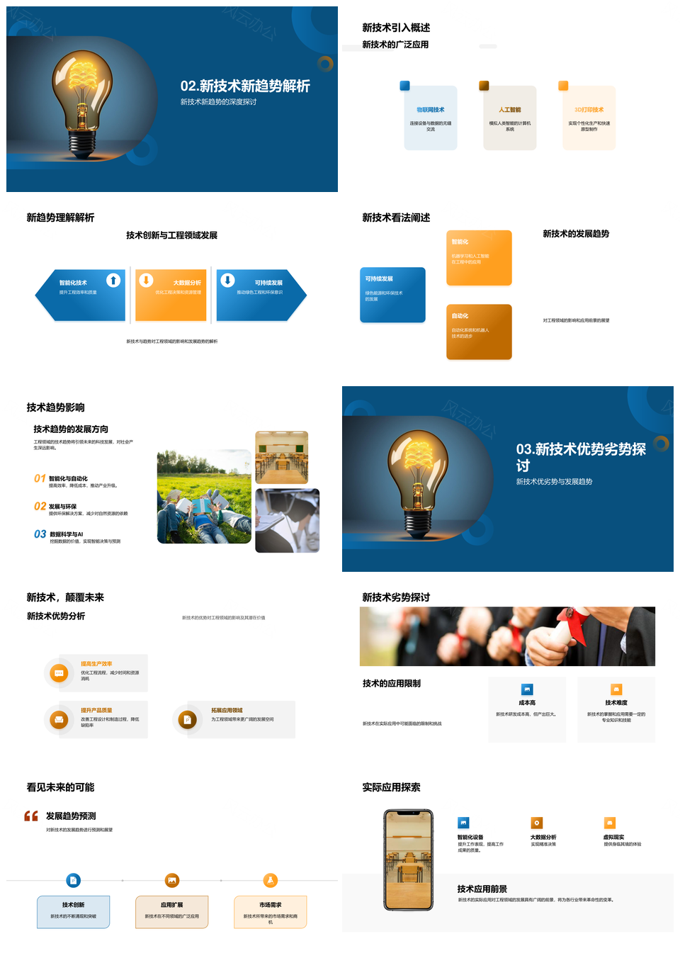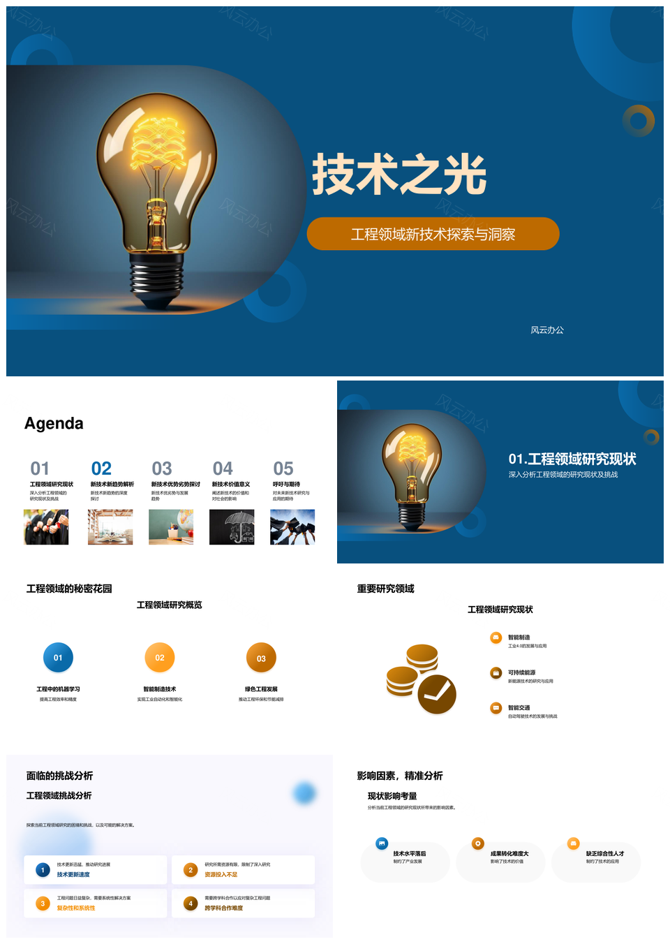 风云办公提供的技术之光照亮工程新技术趋势与应用PPT模板,下载格式为pptx,一共28页,作品中文字及图均可以修改和编辑,图片更改请在作品中右键图片并更换,文字修改请直接点击文字进行修改。