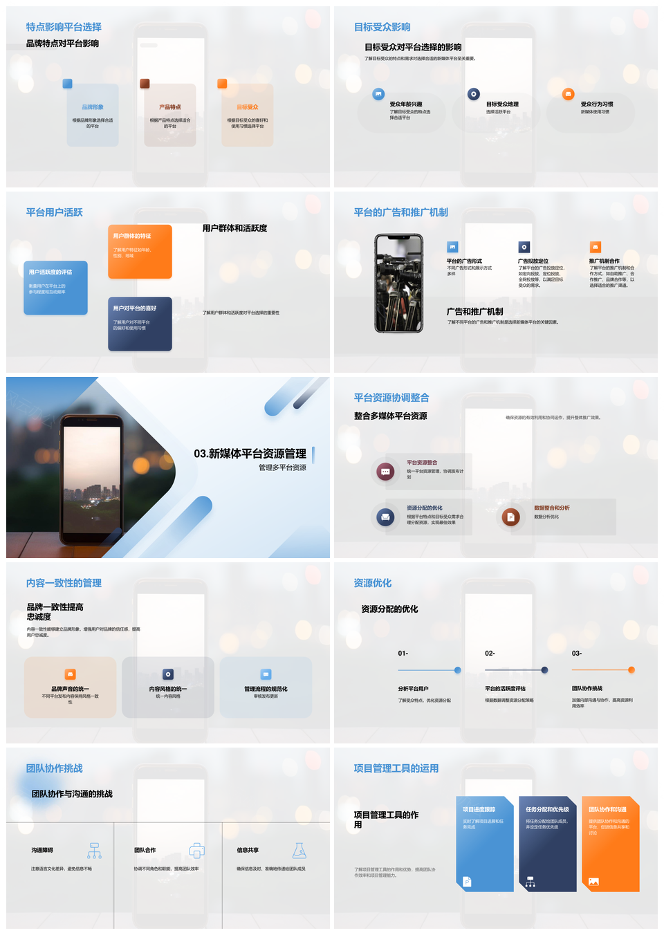 新媒体平台选管特点优势营销团队智能场景传媒PPT模板推荐