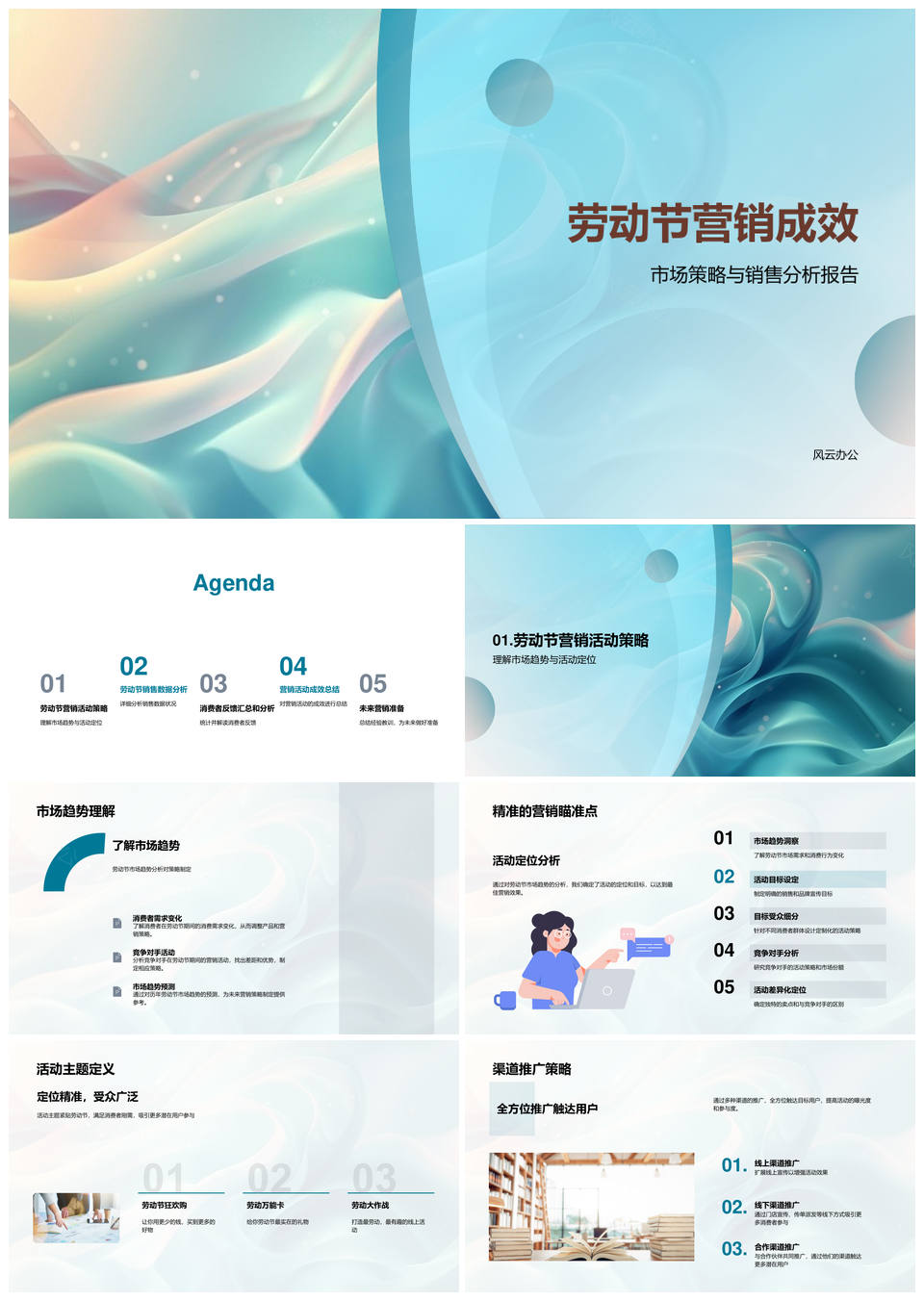 风云办公提供的劳动节营销策略成效与销售数据分析PPT模板,下载格式为pptx,一共29页,作品中文字及图均可以修改和编辑,图片更改请在作品中右键图片并更换,文字修改请直接点击文字进行修改。