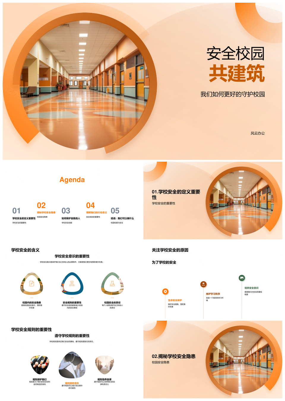 风云办公提供的校园安全共建自查预防隐患教育PPT模板,下载格式为pptx,一共23页,作品中文字及图均可以修改和编辑,图片更改请在作品中右键图片并更换,文字修改请直接点击文字进行修改。