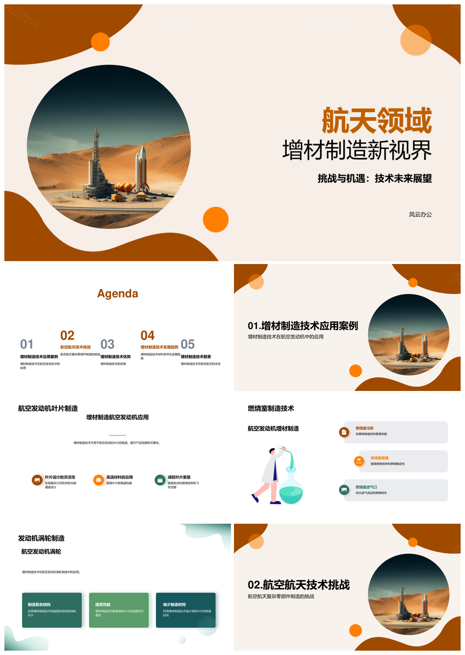 风云办公提供的航空航天增材制造技术应用前景PPT模板,下载格式为pptx,一共24页,作品中文字及图均可以修改和编辑,图片更改请在作品中右键图片并更换,文字修改请直接点击文字进行修改。