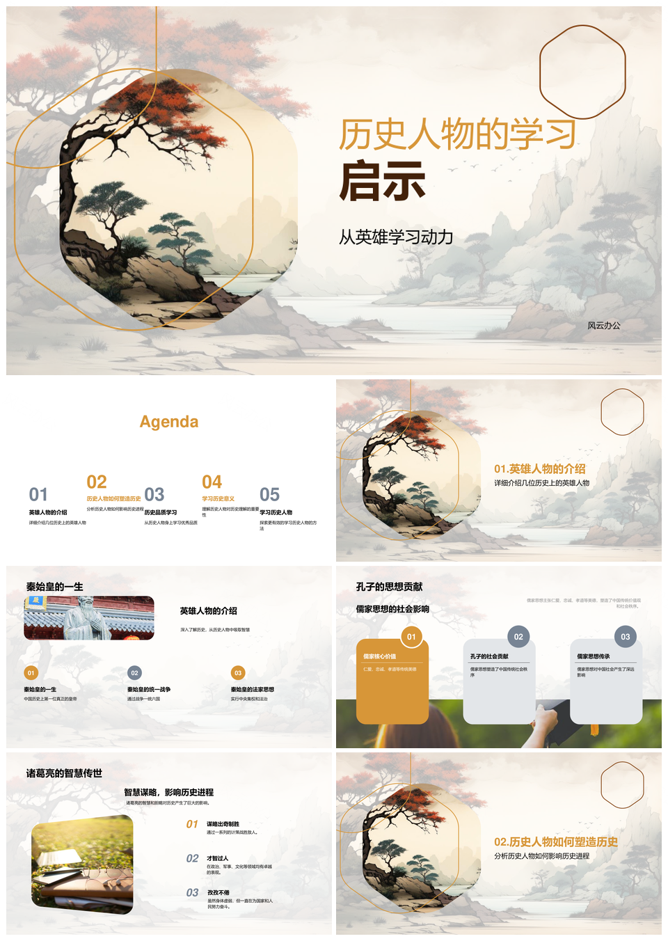 风云办公提供的历史英雄儒家思想启示历史进程PPT模板,下载格式为pptx,一共23页,作品中文字及图均可以修改和编辑,图片更改请在作品中右键图片并更换,文字修改请直接点击文字进行修改。