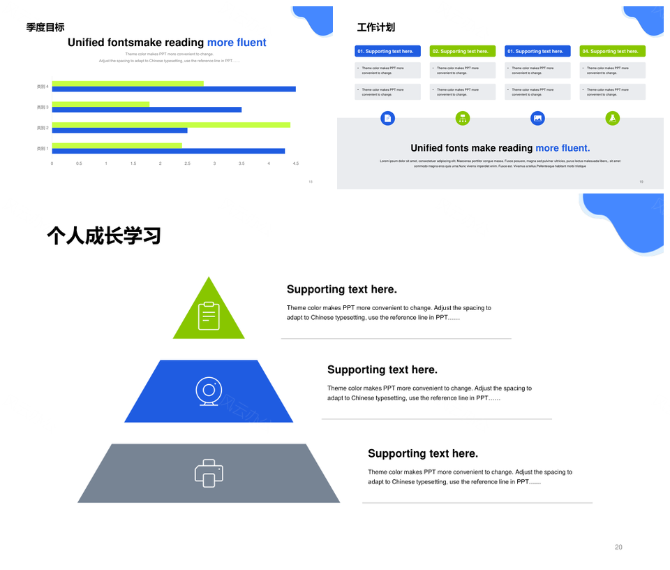 蓝色插画治愈系文艺工作总结计划PPT模板