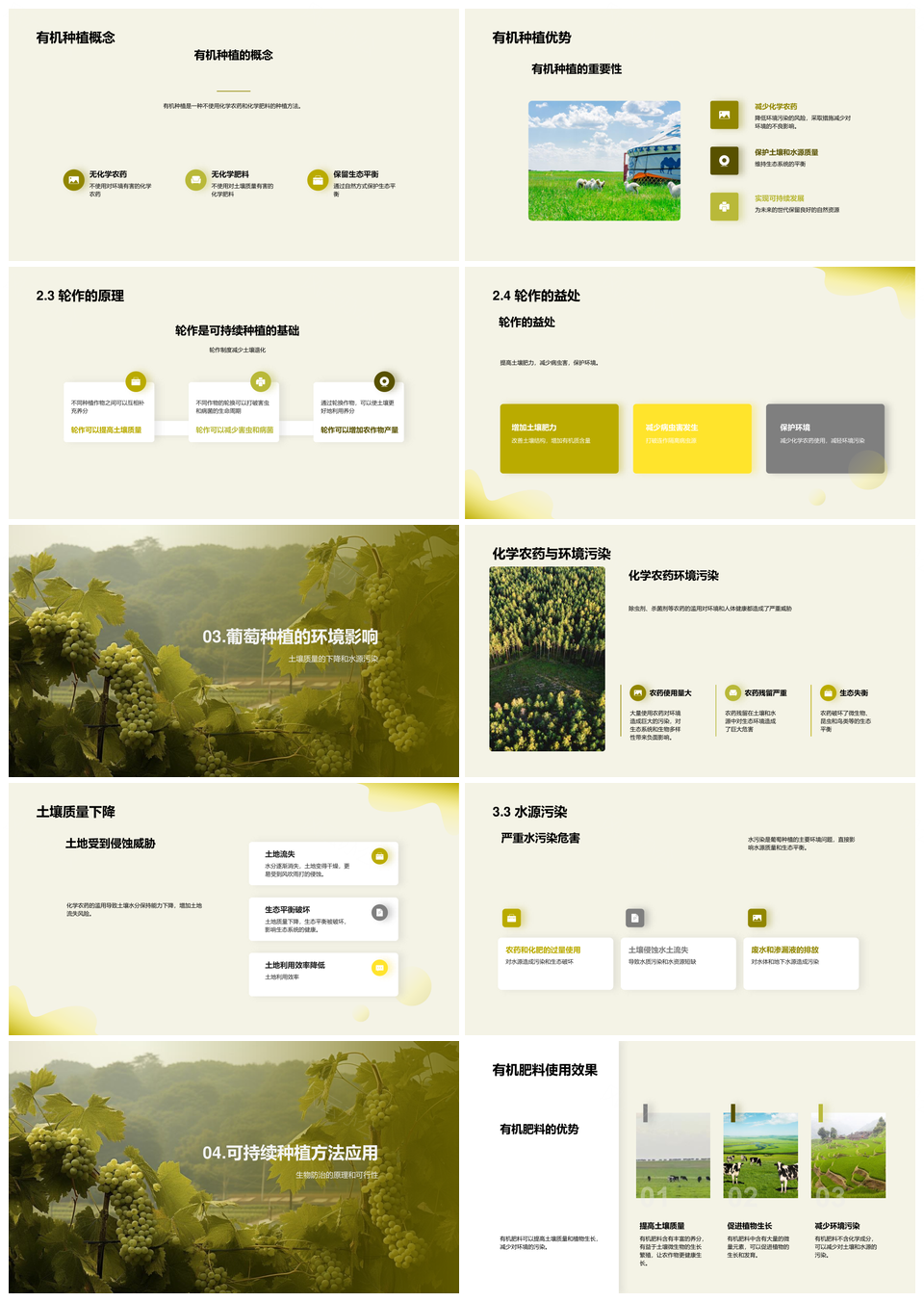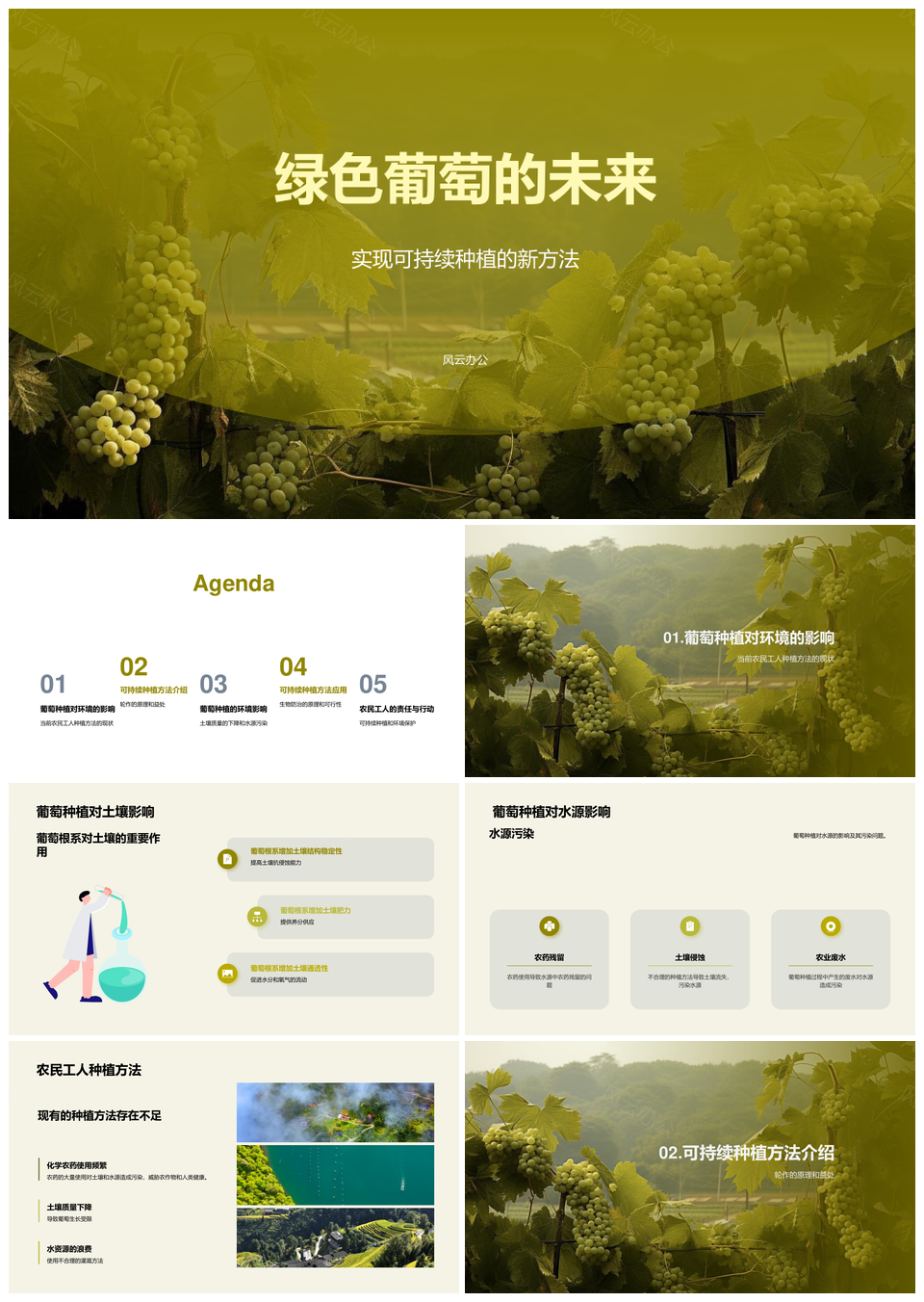 风云办公提供的绿色葡萄有机轮作护土保水可持续种植PPT模板,下载格式为pptx,一共25页,作品中文字及图均可以修改和编辑,图片更改请在作品中右键图片并更换,文字修改请直接点击文字进行修改。
