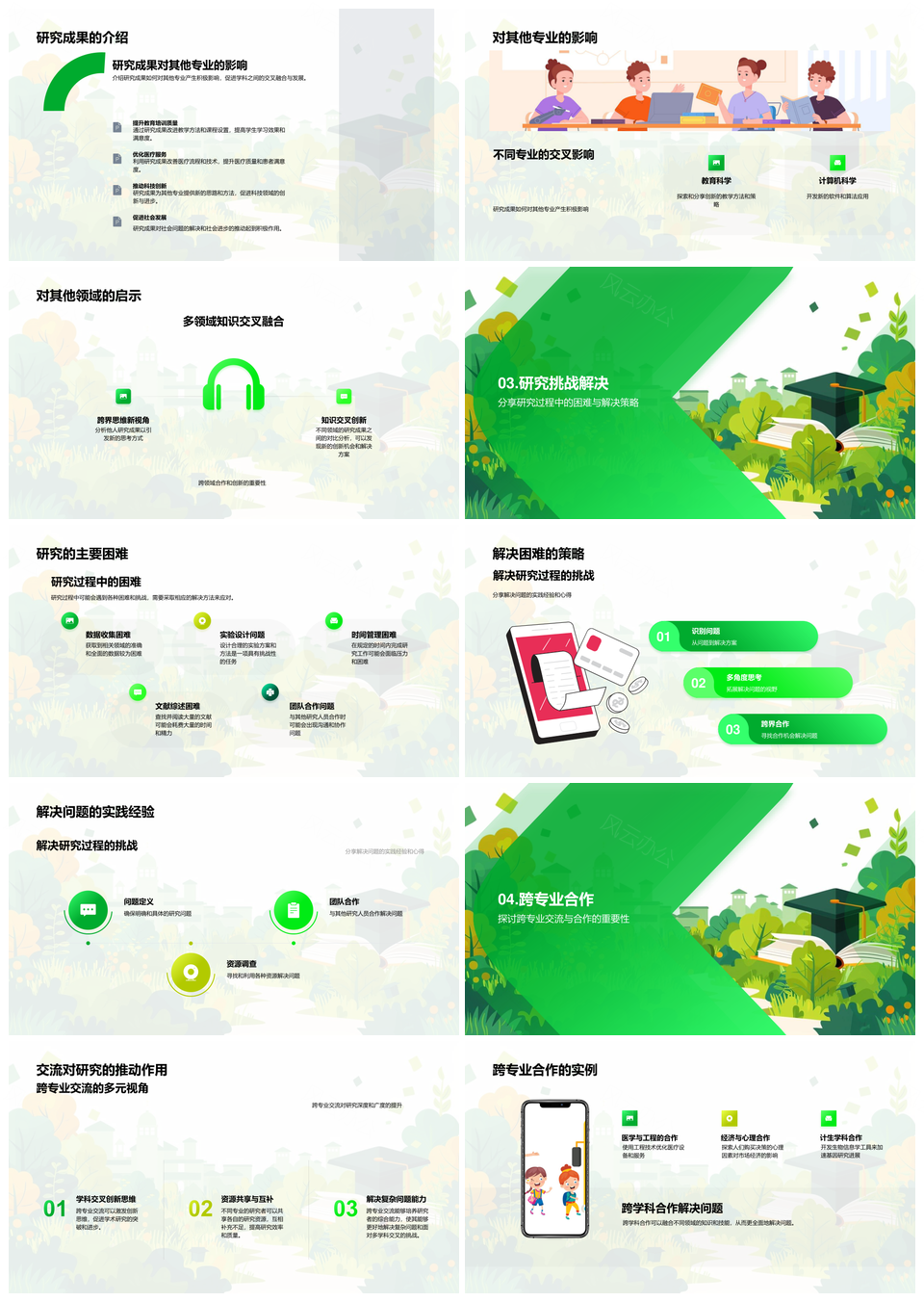 跨域合作学术答辩研究挑战攻关成果影响PPT模板推荐