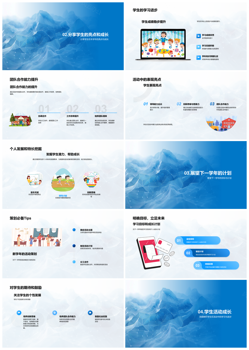 2025学期成绩课程重点学业成就个人团队目标家校共育PPT模板