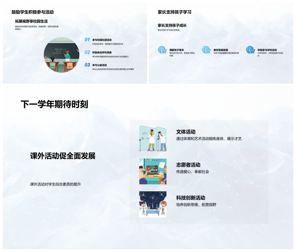 新学期传统创新活动助力学业团队家校共育PPT模板推荐