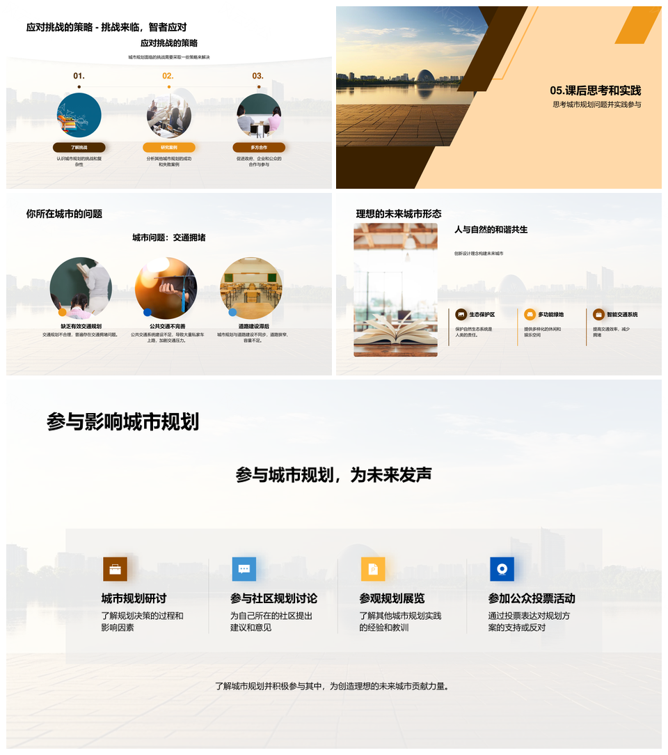 城市规划目标市民参与交通绿化公共设施地理空间天际线PPT模板
