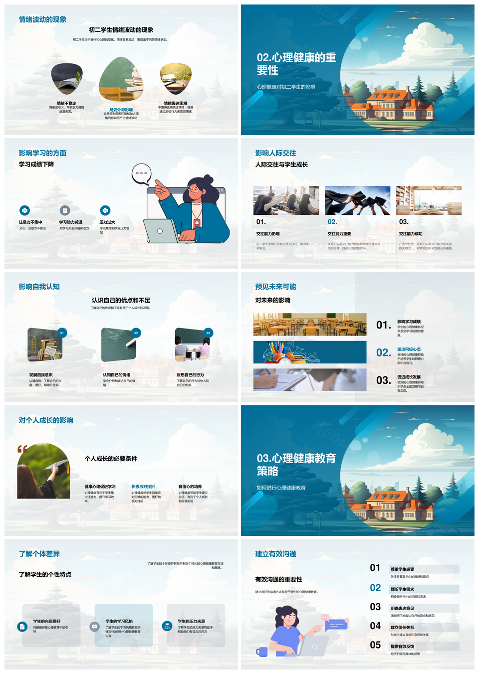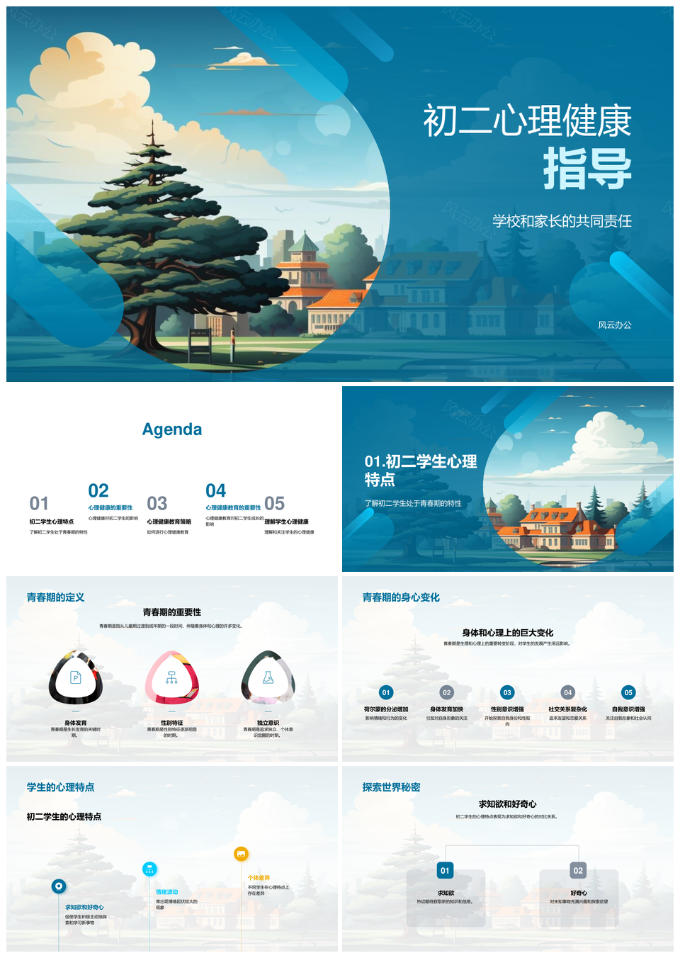 风云办公提供的初二青春期心理健康教育家校辅导指导PPT模板,下载格式为pptx,一共33页,作品中文字及图均可以修改和编辑,图片更改请在作品中右键图片并更换,文字修改请直接点击文字进行修改。
