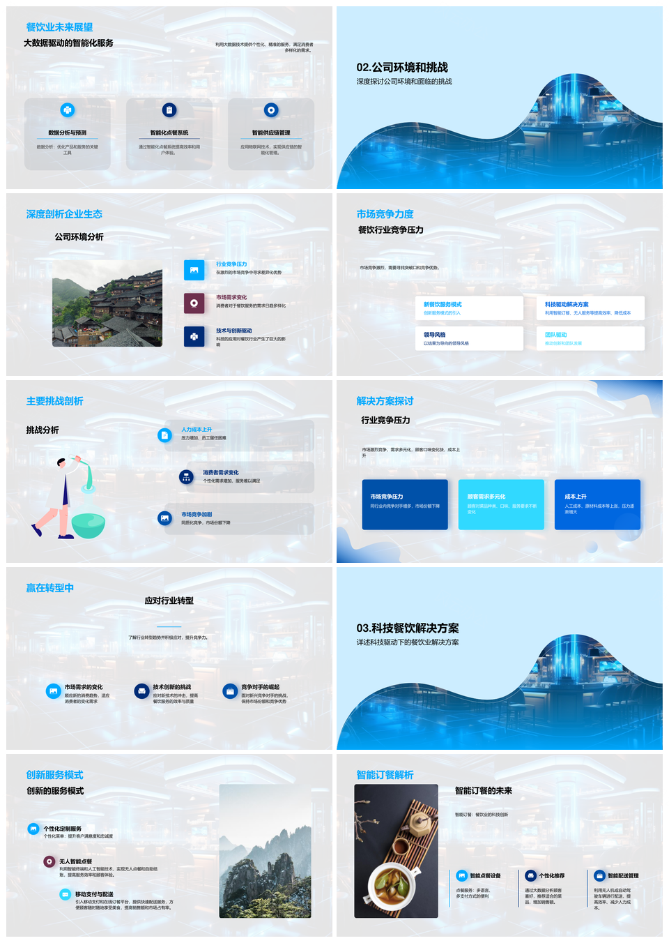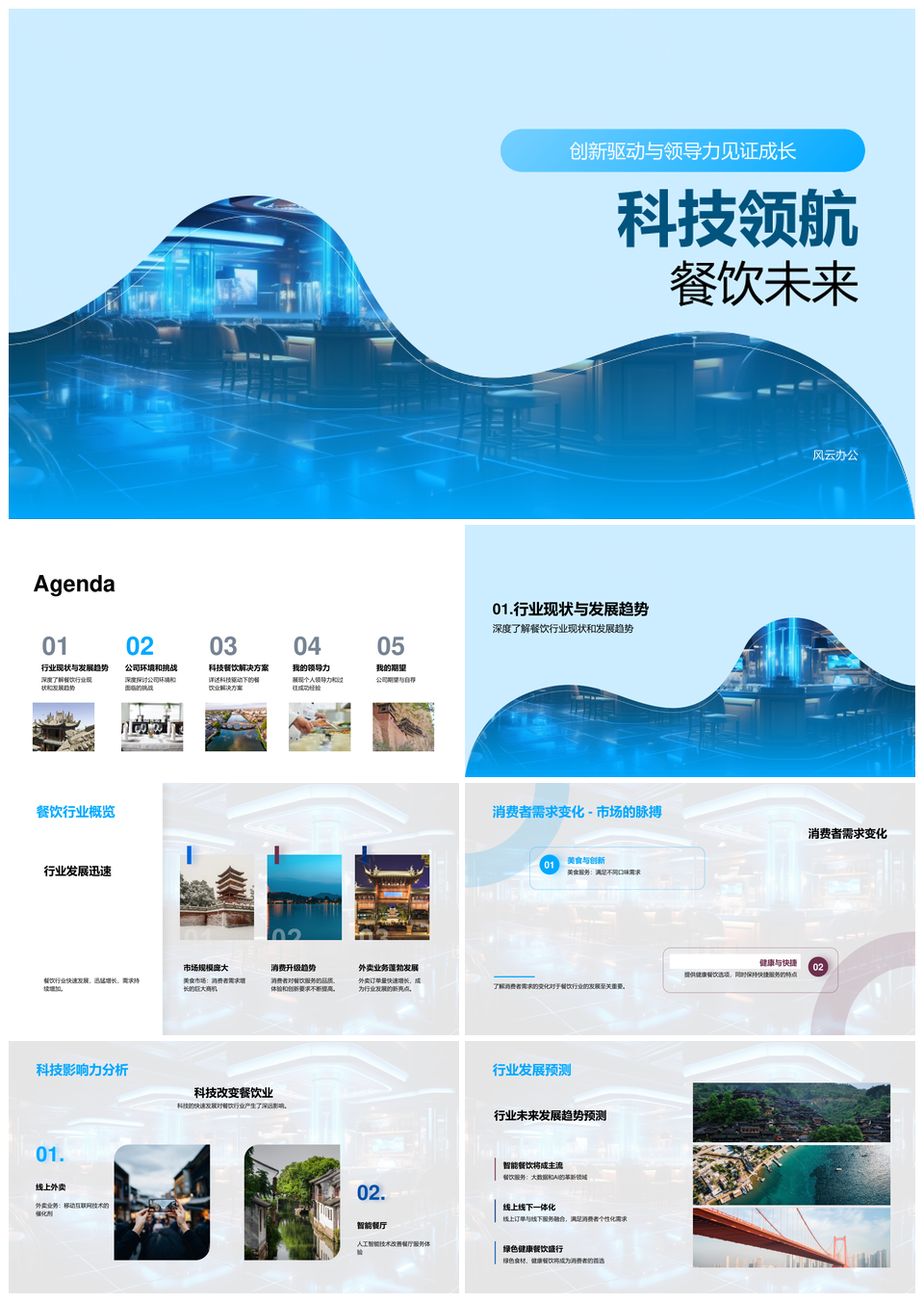 风云办公提供的科技领航创新驱动餐饮未来趋势PPT模板,下载格式为pptx,一共33页,作品中文字及图均可以修改和编辑,图片更改请在作品中右键图片并更换,文字修改请直接点击文字进行修改。
