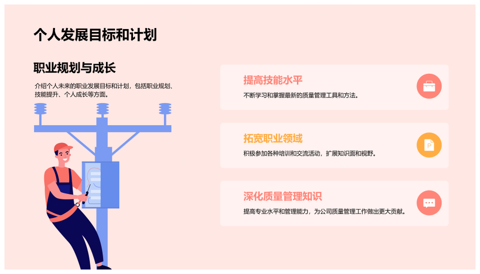 这是一张橙色卡通质量检测经理教育金融培训竞聘述职PPT模板,包含橙色、卡通、质量检测、经理、教育、金融、培训、竞聘、述职等主题内容,也可用作橙色卡通质量检测经理、卡通质量检测经理教育、质量检测经理教育金融培训、经理教育金融培训竞聘、教育金融培训竞聘述职、橙色卡通质量检测、卡通质量检测经理、质量检测经理教育、经理教育金融培训、教育金融培训竞聘、金融培训竞聘述职、橙色卡通、卡通质量检测、质量检测经理、经理教育等PPT场景使用。 风云办公提供的橙色卡通质量检测经理教育金融培训竞聘述职PPT模板,下载格式为pptx,一共19页,作品中文字及图均可以修改和编辑,图片更改请在作品中右键图片并更换,文字修改请直接点击文字进行修改。