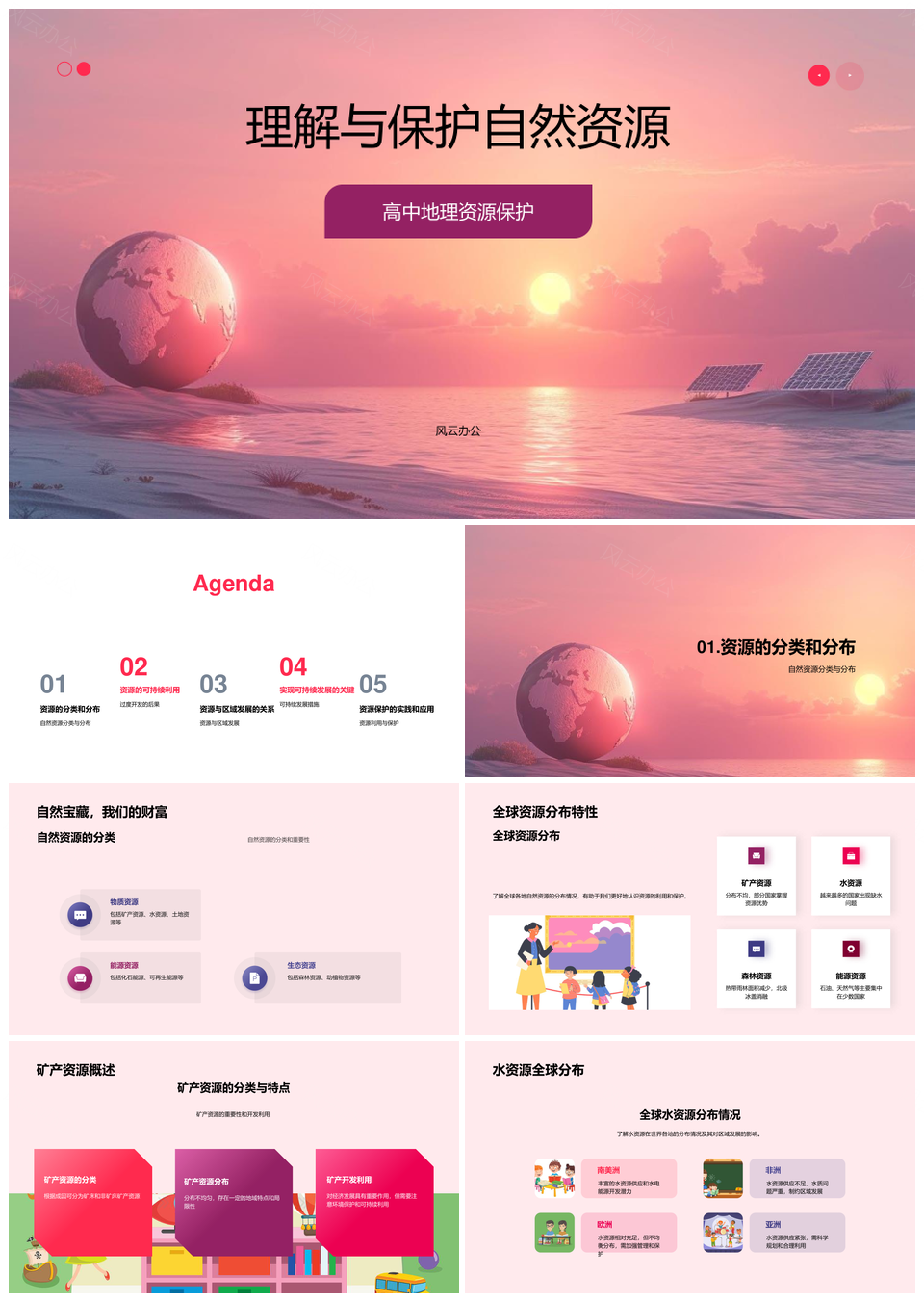 风云办公提供的高中地理自然资源分类分布与保护开发PPT模板,下载格式为pptx,一共33页,作品中文字及图均可以修改和编辑,图片更改请在作品中右键图片并更换,文字修改请直接点击文字进行修改。