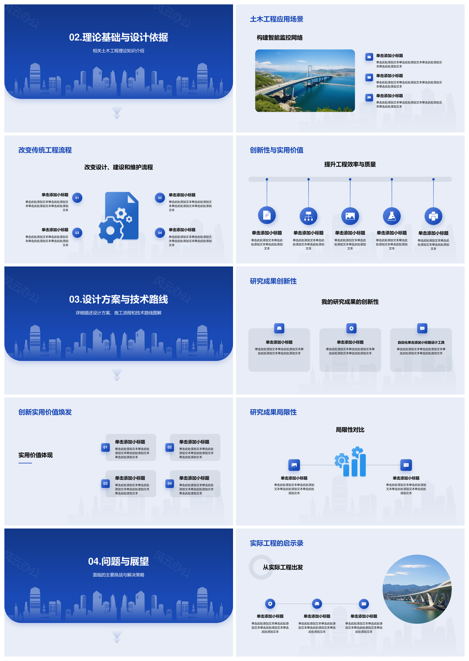这是一张蓝色商务简约土木工程城市建筑地产答辩PPT模板,包含蓝色、商务、简约、土木工程、城市建筑、地产、答辩等主题内容,也可用作蓝色商务简约土木工程、商务简约土木工程城市建筑、简约土木工程城市建筑地产、土木工程城市建筑地产答辩、蓝色商务简约、商务简约土木工程、简约土木工程城市建筑、土木工程城市建筑地产、城市建筑地产答辩、蓝色商务、商务简约、简约土木工程、土木工程城市建筑、城市建筑地产、地产答辩等PPT场景使用。 风云办公提供的蓝色商务简约土木工程城市建筑地产答辩PPT模板,下载格式为pptx,一共20页,作品中文字及图均可以修改和编辑,图片更改请在作品中右键图片并更换,文字修改请直接点击文字进行修改。