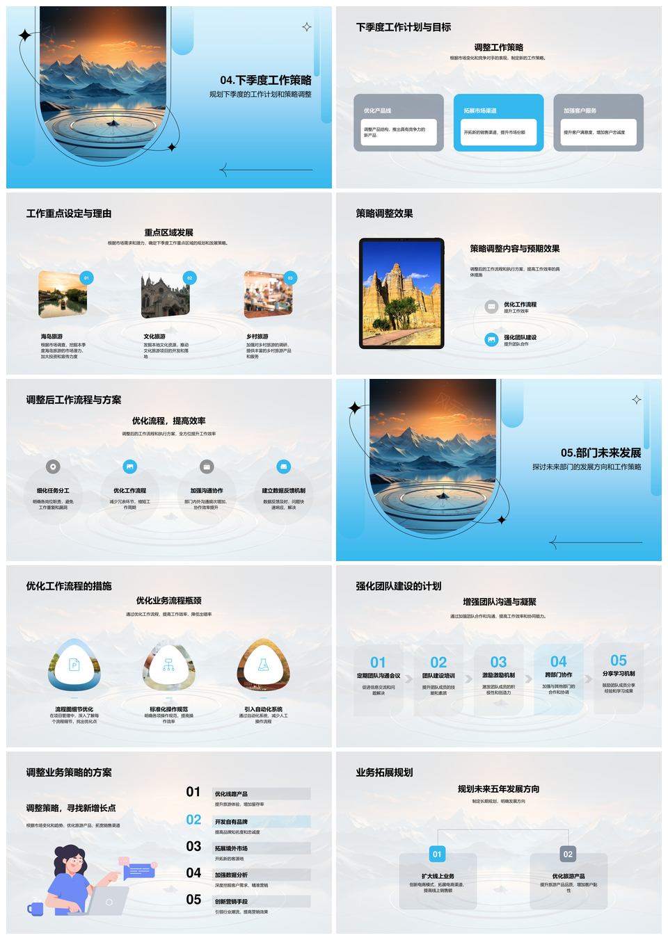 这是一张旅游业季度动态山系战略趋势解析PPT模板,包含旅游业、季度、山系、战略、趋势、解析等主题内容,也可用作旅游业季度动态战略趋势、季度动态山系战略趋势、动态山系战略趋势解析、山系战略趋势解析、旅游业季度动态战略、季度动态山系战略、动态山系战略趋势、山系战略趋势、旅游业动态战略趋势、季度动态山系、动态战略趋势解析、战略趋势解析、旅游业季度动态、季度山系战略、山系战略解析等PPT场景使用。