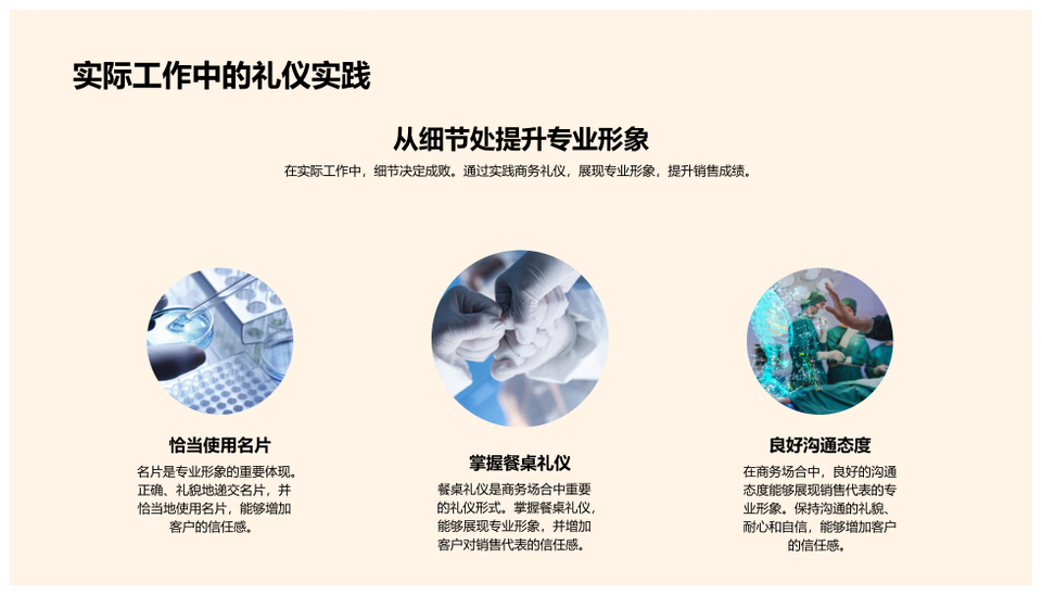 这是一张医药销售商务礼仪与产品需求交流技巧PPT模板,包含医药、销售、商务礼仪、产品、需求、交流、技巧等主题内容,也可用作医药销售商务礼仪、商务礼仪产品需求交流、产品需求交流技巧、医药销售商务礼仪产品、销售商务礼仪产品需求、商务礼仪产品需求交流、礼仪产品需求交流技巧、医药销售商务礼仪需求、销售商务礼仪交流技巧、商务礼仪产品交流技巧、医药销售产品需求、商务礼仪交流技巧、销售产品需求交流、产品需求交流技巧、医药商务礼仪产品等PPT场景使用。