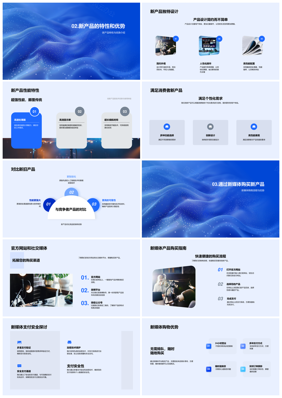 新媒体产品发布社交平台消费体验支付安全售后特性PPT模板推荐