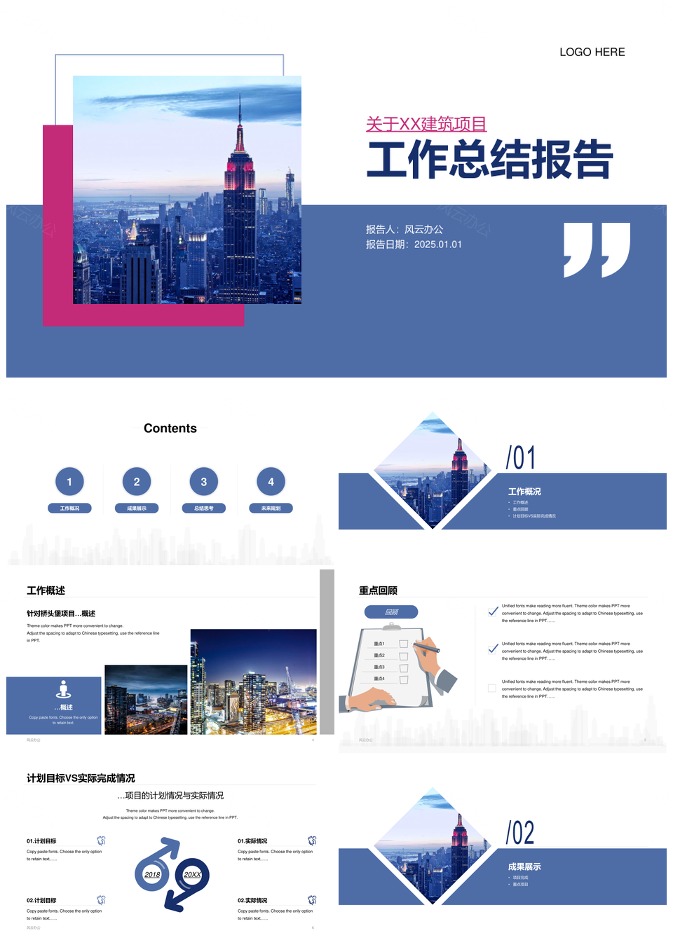 2025建筑城市年终总结分析商业计划目标规划展望PPT模板