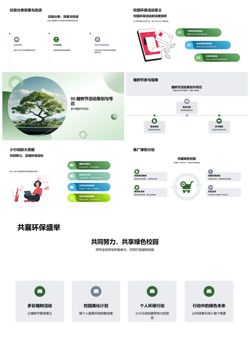 这是一张绿色之约环保先行植树节校园计划护生态全球PPT模板,包含绿色之约、环保、先行、植树节、校园计划、护生态、全球等主题内容,也可用作绿色之约环保先行植树节校园、环保先行植树节校园计划、植树节校园计划护生态、校园计划护生态全球、绿色之约环保先行植树节、环保先行植树节校园、植树节校园计划、校园计划护生态、计划护生态全球、绿色之约环保先行、环保先行植树节、植树节校园、校园计划、计划护生态、护生态全球等PPT场景使用。 风云办公提供的绿色之约环保先行植树节校园计划护生态全球PPT模板,下载格式为pptx,一共25页,作品中文字及图均可以修改和编辑,图片更改请在作品中右键图片并更换,文字修改请直接点击文字进行修改。
