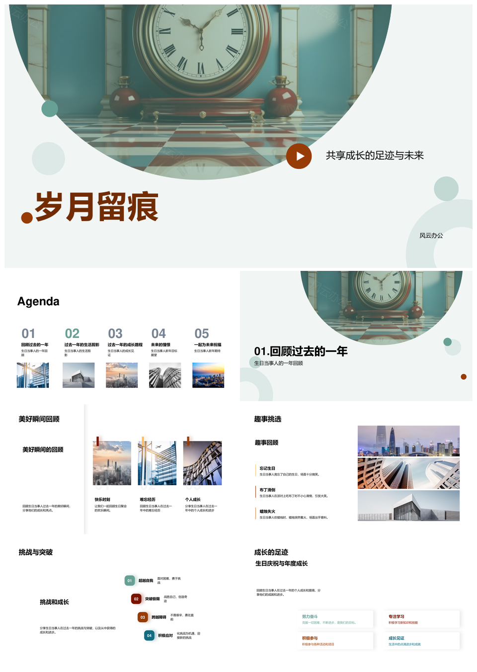 风云办公提供的岁月留痕共享成长经年钟表载梦PPT模板,下载格式为pptx,一共33页,作品中文字及图均可以修改和编辑,图片更改请在作品中右键图片并更换,文字修改请直接点击文字进行修改。