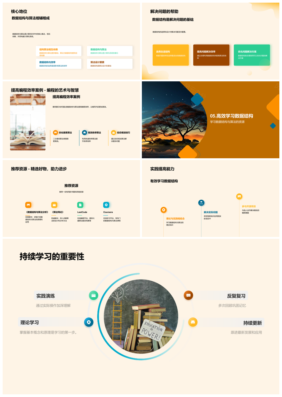计算机科学教学理论实践数据结构算法系统编程PPT模板