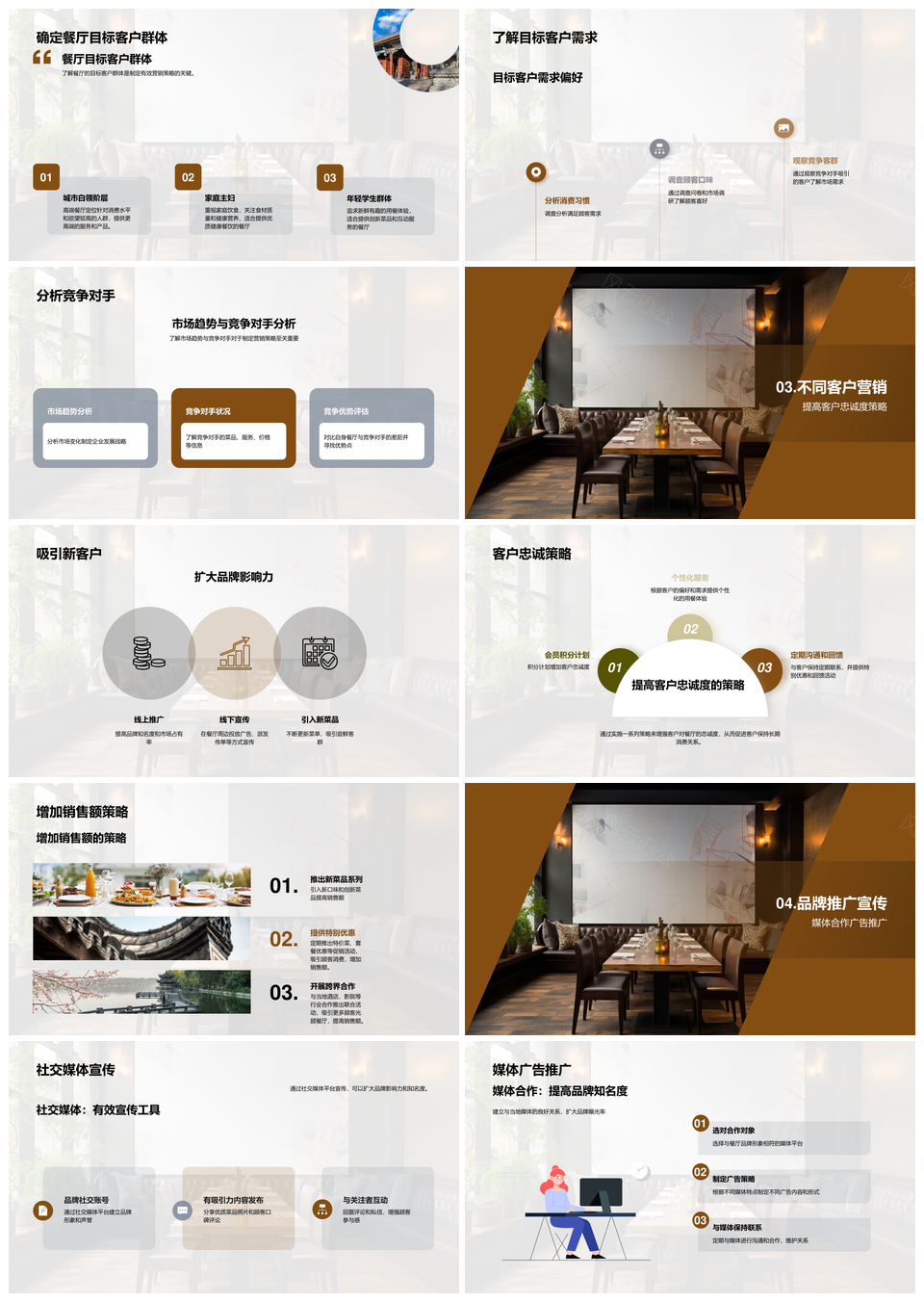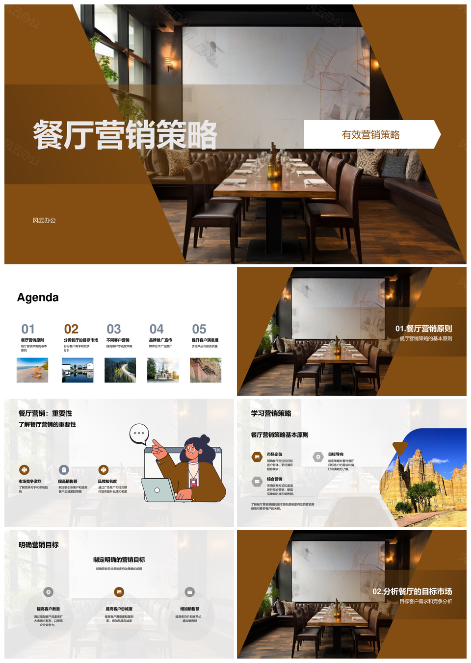 风云办公提供的餐厅有效营销策略专科通用教学课件,下载格式为pptx,一共23页,作品中文字及图均可以修改和编辑,图片更改请在作品中右键图片并更换,文字修改请直接点击文字进行修改。