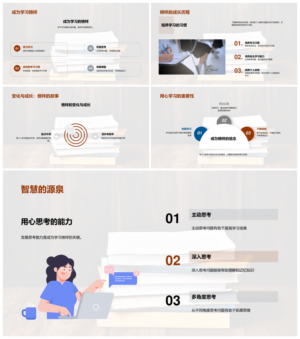 风云办公提供的学霸之路模仿优秀榜样经验法则习惯PPT模板,下载格式为pptx,一共33页,作品中文字及图均可以修改和编辑,图片更改请在作品中右键图片并更换,文字修改请直接点击文字进行修改。