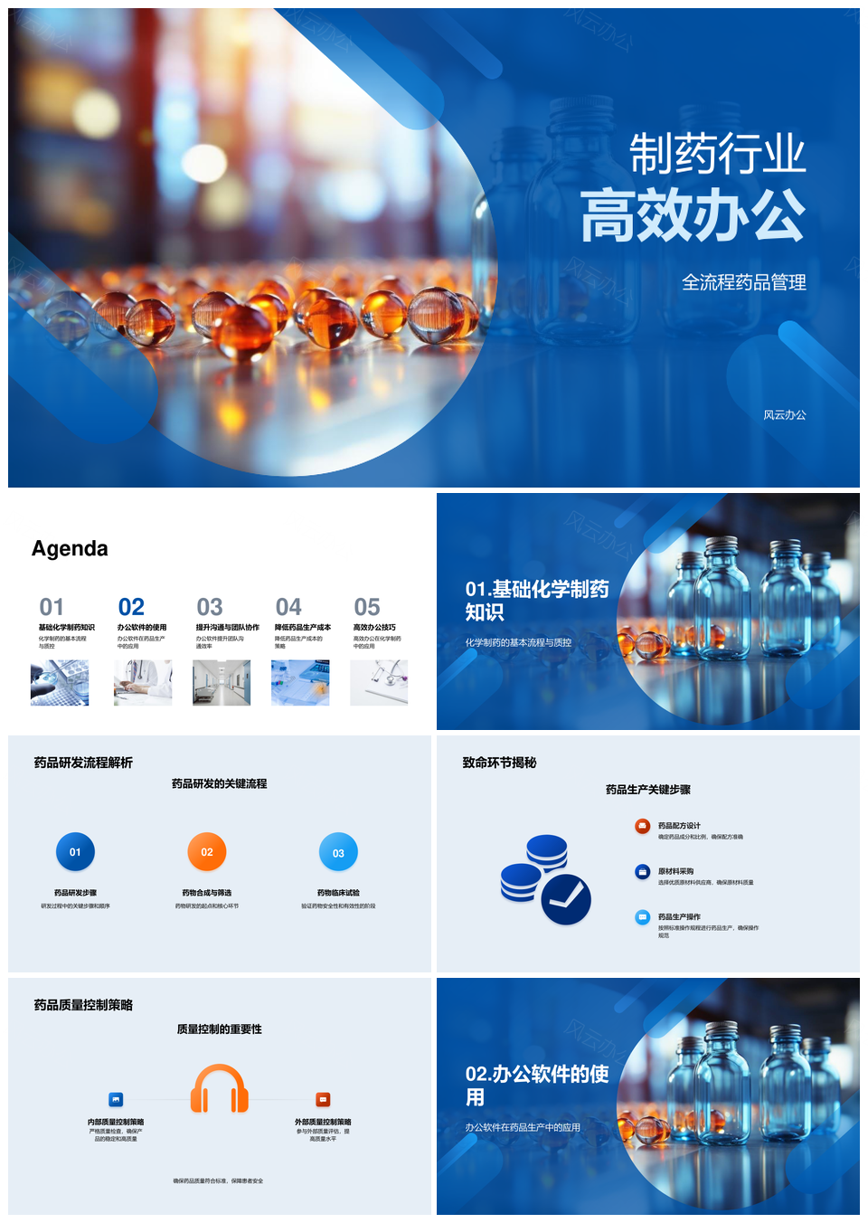 风云办公提供的制药高效研发全流程质控管理PPT模板,下载格式为pptx,一共23页,作品中文字及图均可以修改和编辑,图片更改请在作品中右键图片并更换,文字修改请直接点击文字进行修改。