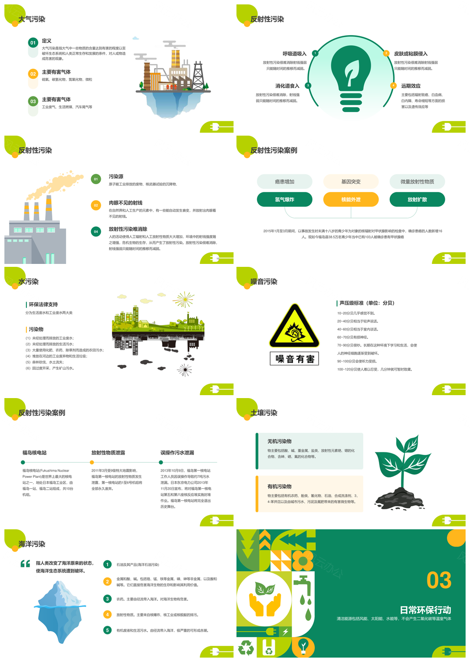 环保教育污染防治垃圾分类节水减塑可持续发展PPT模板