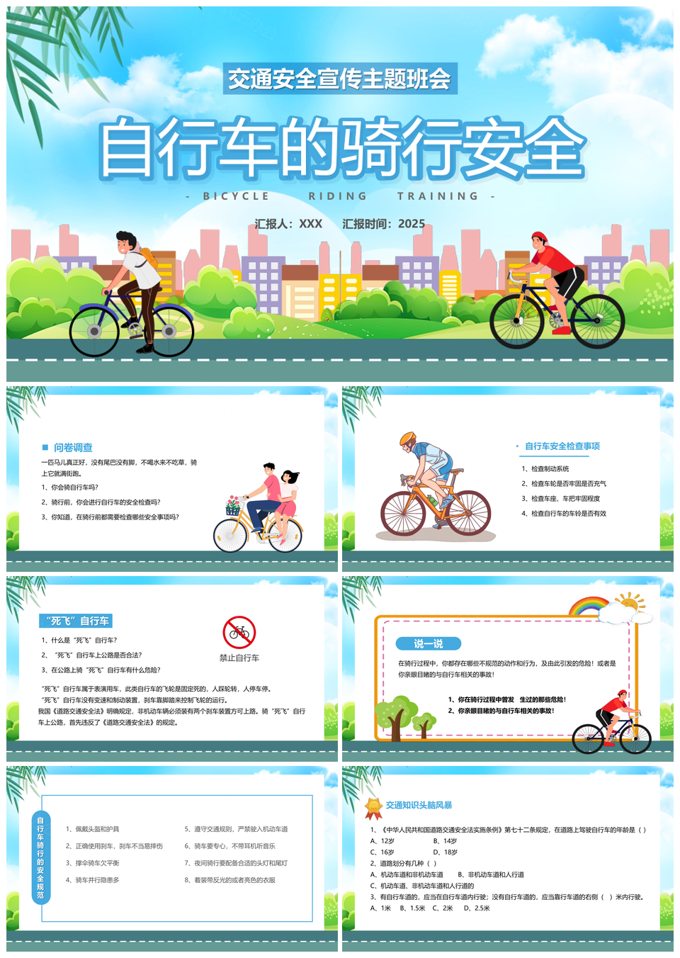 2025卡通头盔护具骑行安全交通知识主题班会PPT模板