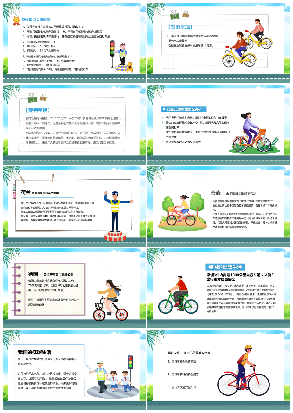 2025卡通头盔护具骑行安全交通知识主题班会PPT模板推荐