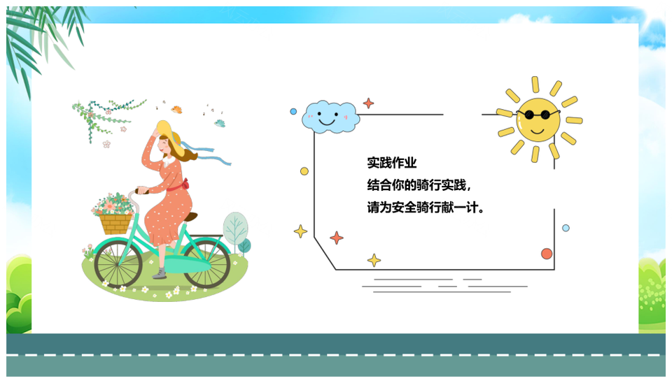 这是一张2025卡通头盔护具骑行安全交通知识主题班会PPT模板,包含2025、卡通、头盔、护具、骑行、安全、交通、知识、主题、班会等主题内容,也可用作2025卡通头盔护具、卡通头盔护具骑行、头盔护具骑行安全、护具骑行安全交通、骑行安全交通知识、安全交通知识主题班会、2025卡通头盔护具骑行、卡通头盔护具骑行安全、头盔护具骑行安全交通、护具骑行安全交通知识、骑行安全交通知识主题班会、安全交通知识主题班会、2025卡通头盔、卡通头盔护具、头盔护具骑行、护具骑行安全等PPT场景使用。 风云办公提供的2025卡通头盔护具骑行安全交通知识主题班会PPT模板,下载格式为pptx,一共19页,作品中文字及图均可以修改和编辑,图片更改请在作品中右键图片并更换,文字修改请直接点击文字进行修改。