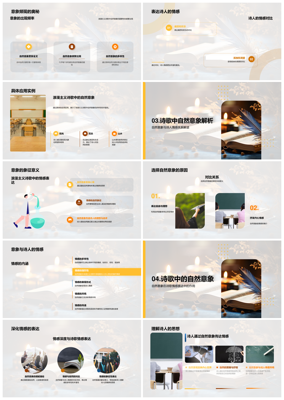 这是一张19世纪欧洲浪漫诗歌自然意象情感象征PPT模板,包含19世纪、欧洲、浪漫诗歌、自然意象、情感象征等主题内容,也可用作19世纪欧洲浪漫诗歌自然意象、欧洲浪漫诗歌自然意象情感象征、浪漫诗歌自然意象情感象征、19世纪欧洲诗歌自然意象、19世纪欧洲浪漫诗歌、欧洲浪漫诗歌自然意象、浪漫诗歌自然意象、诗歌自然意象情感象征、欧洲浪漫诗歌、19世纪欧洲浪漫、浪漫诗歌自然意象、自然意象情感象征、19世纪欧洲、欧洲浪漫、浪漫诗歌等PPT场景使用。 风云办公提供的19世纪欧洲浪漫诗歌自然意象情感象征PPT模板,下载格式为pptx,一共23页,作品中文字及图均可以修改和编辑,图片更改请在作品中右键图片并更换,文字修改请直接点击文字进行修改。